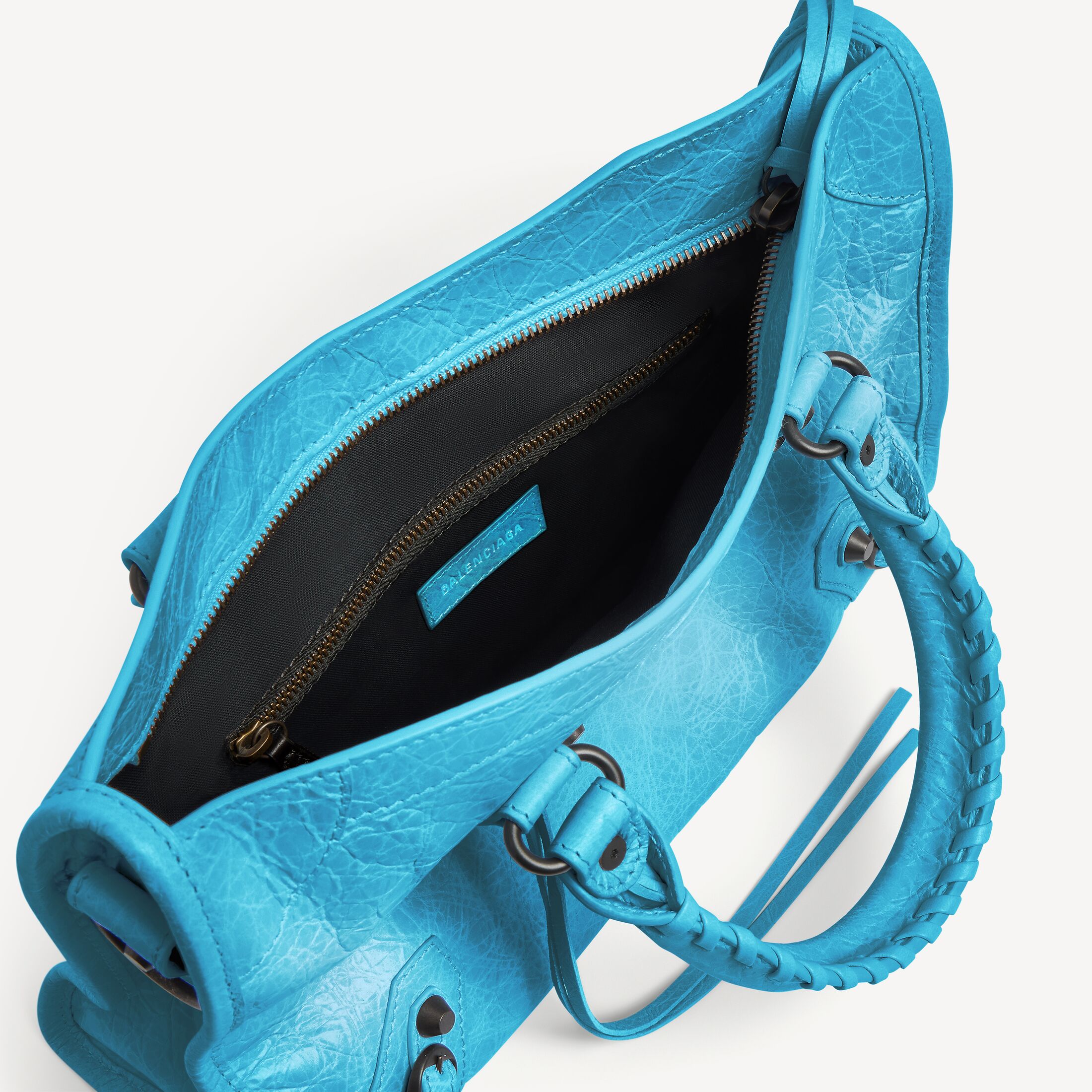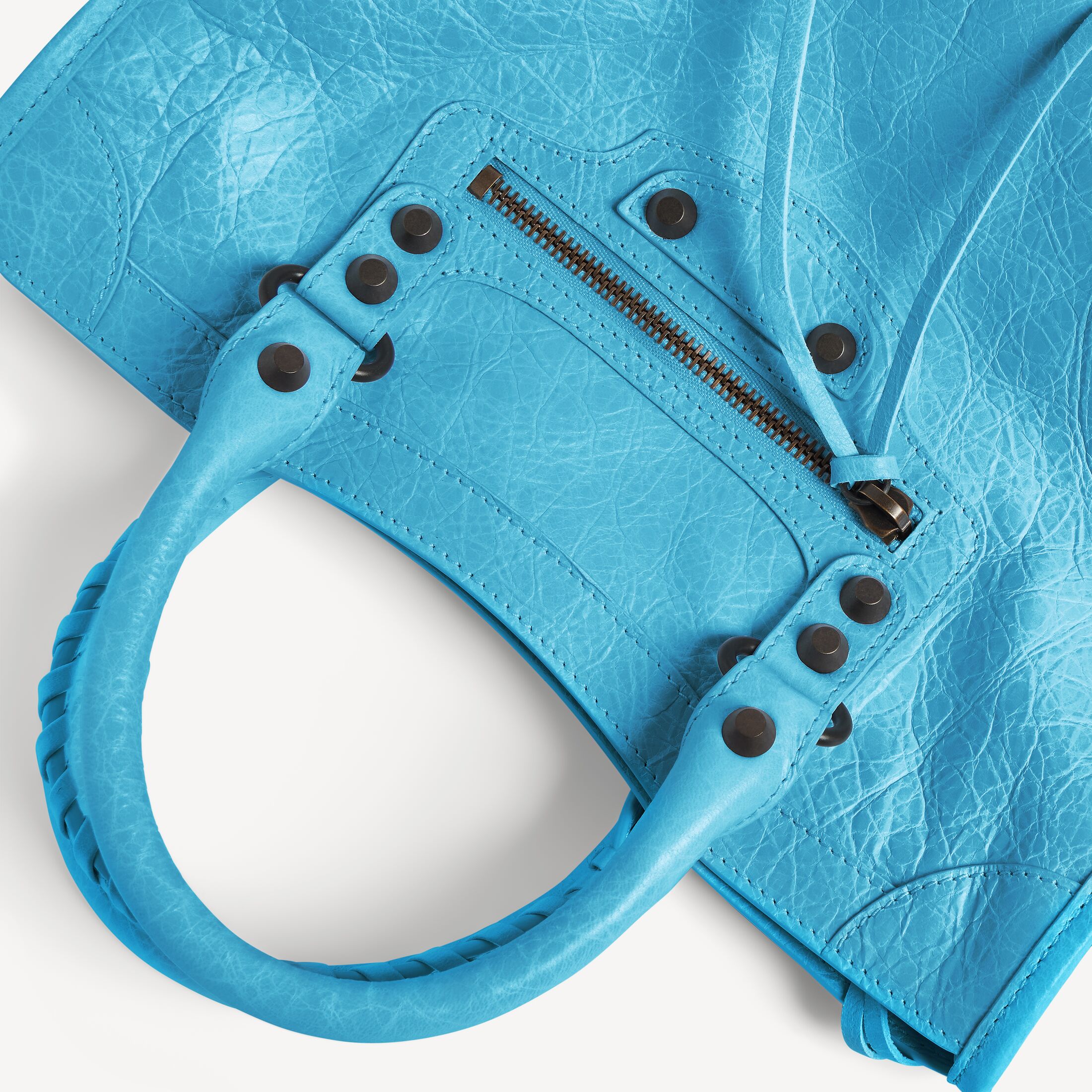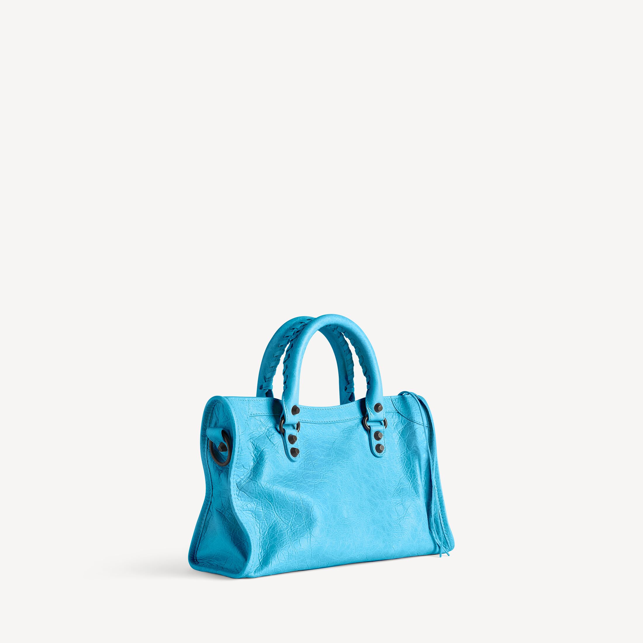 Le City蓝青色羊皮革小号手袋,饰以黄铜金属配件此商品支持花呗分期产品细节