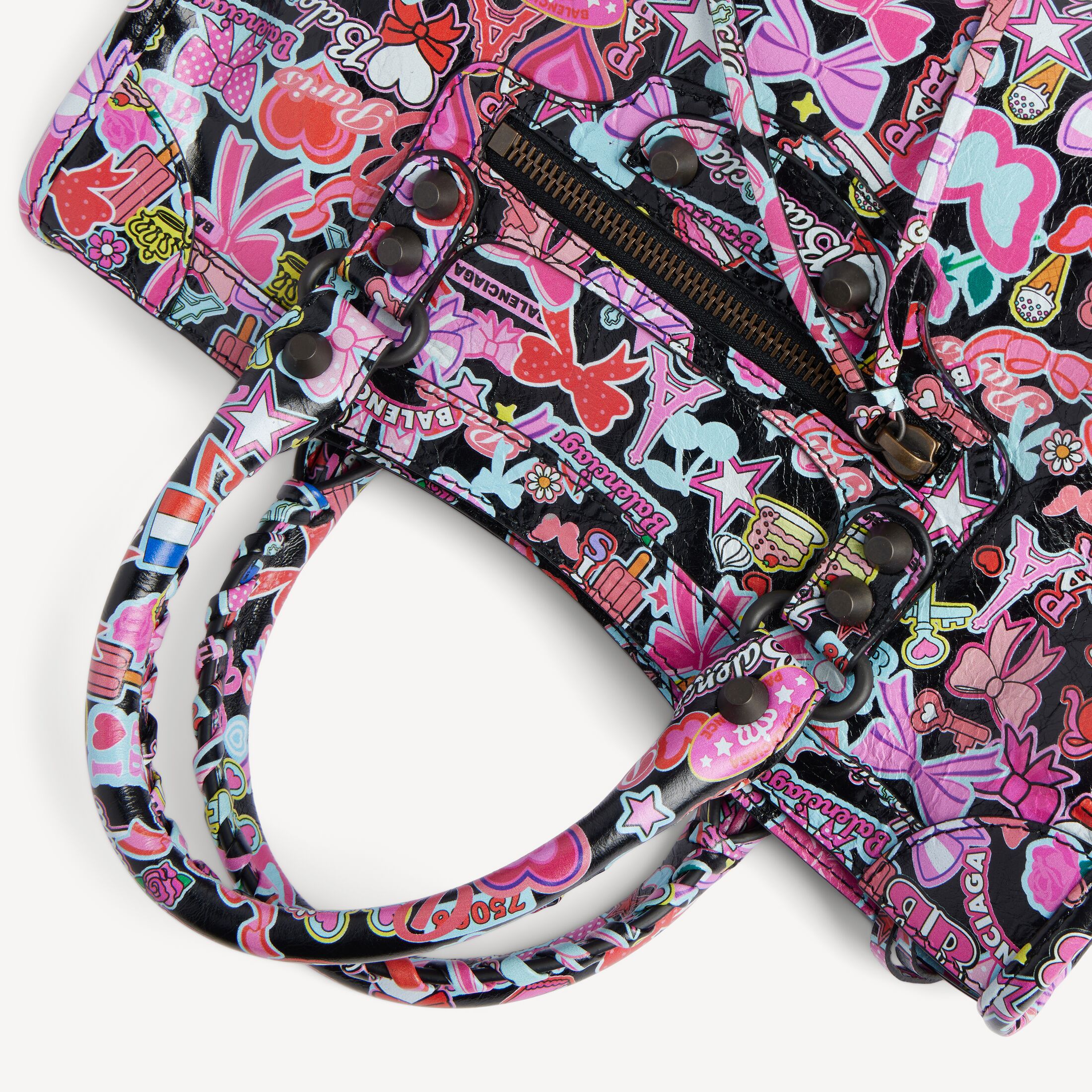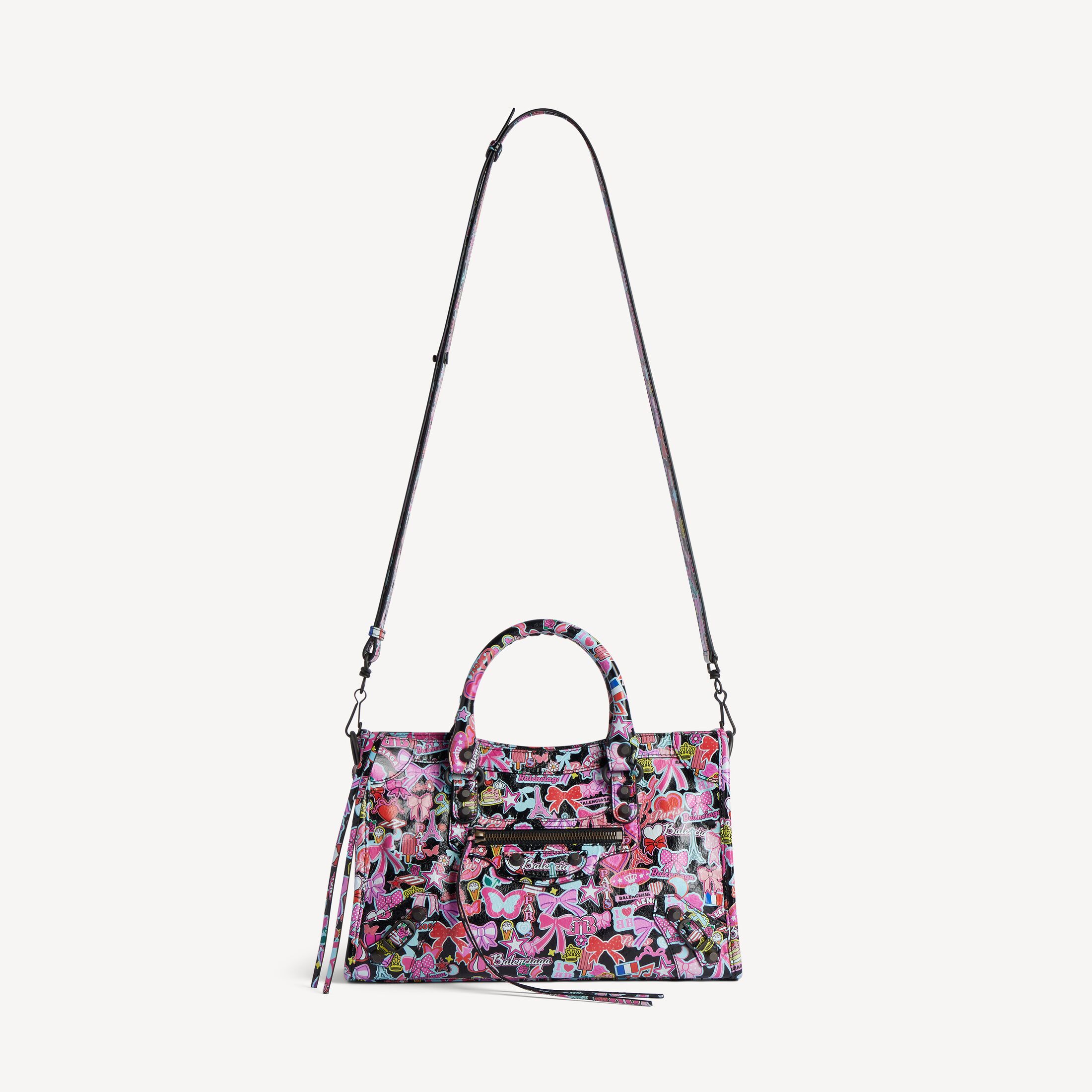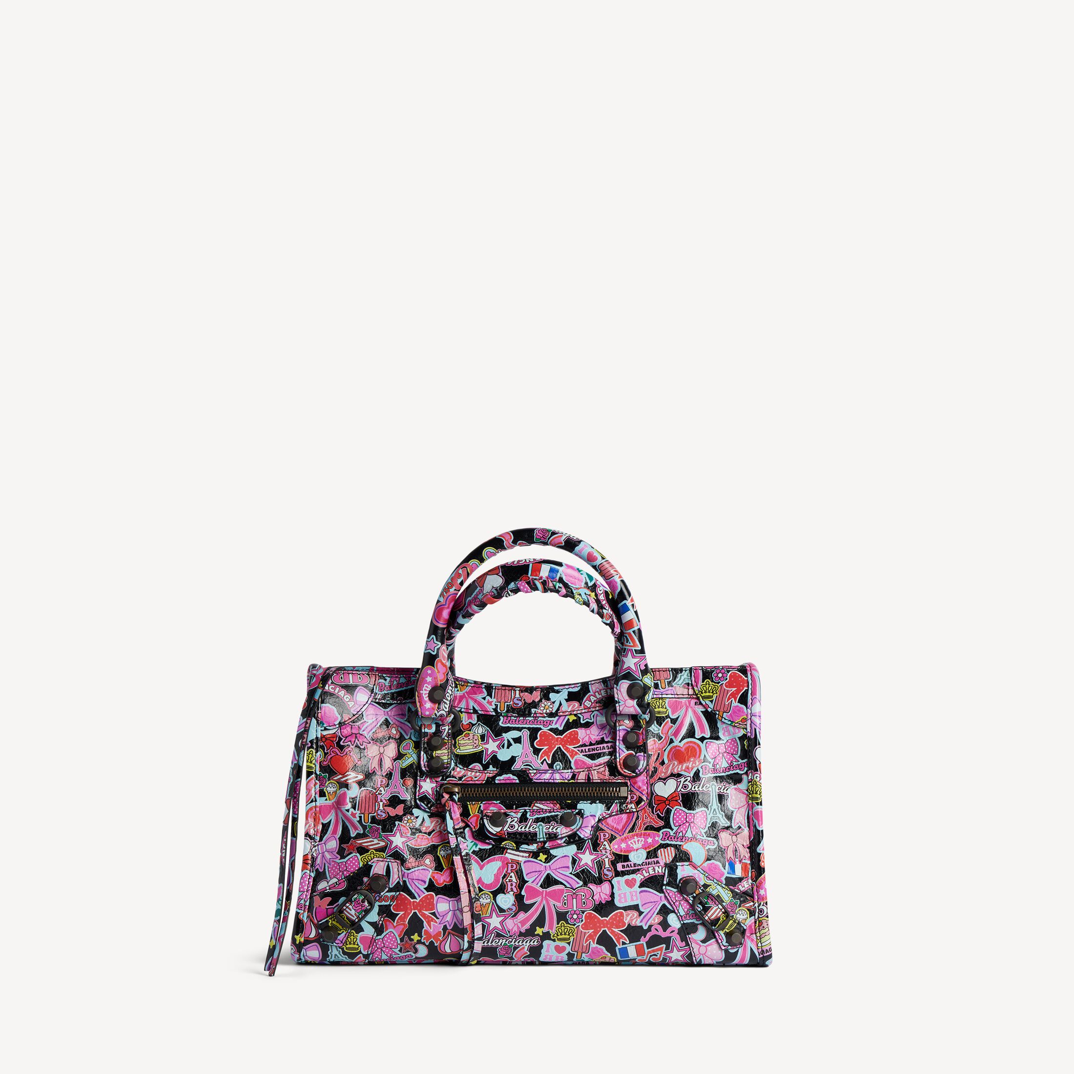 Le City黑色和多色cute allover印花细纹羊皮革小号手袋,饰以黄铜金属配件此商品支持花呗分期产品细节