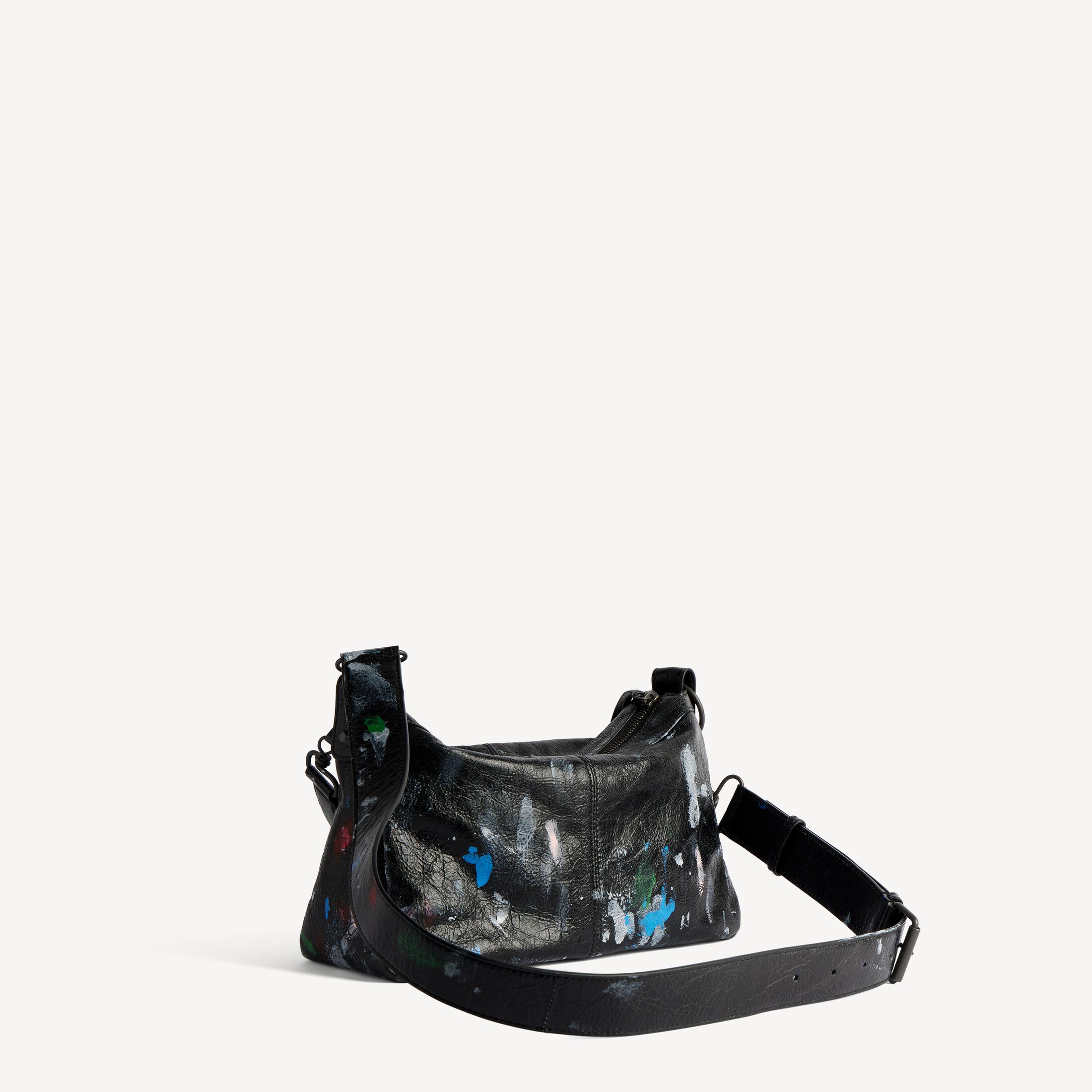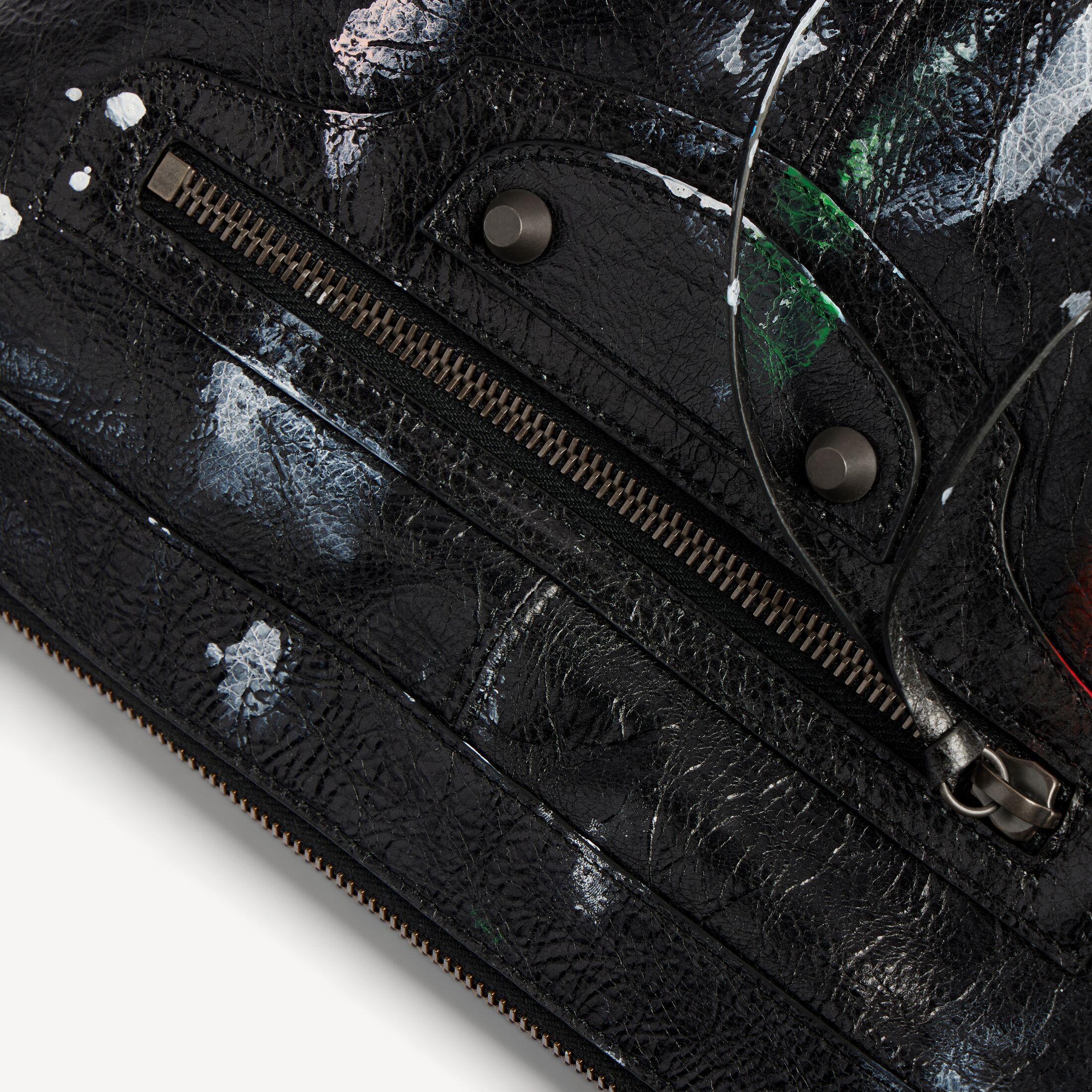 Le City Moto细纹羊皮革小号手袋,饰以黑色和多色painter's shirt艺术作品和黄铜金属配件此商品支持花呗分期产品细节