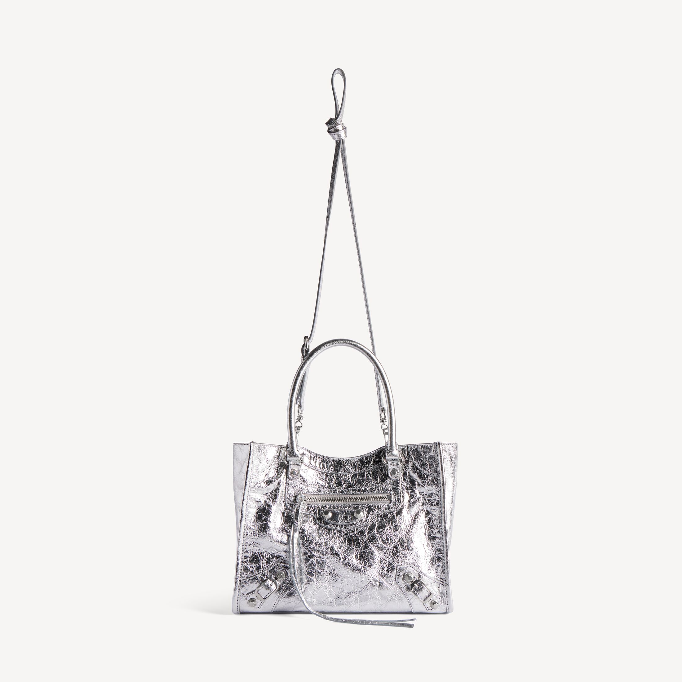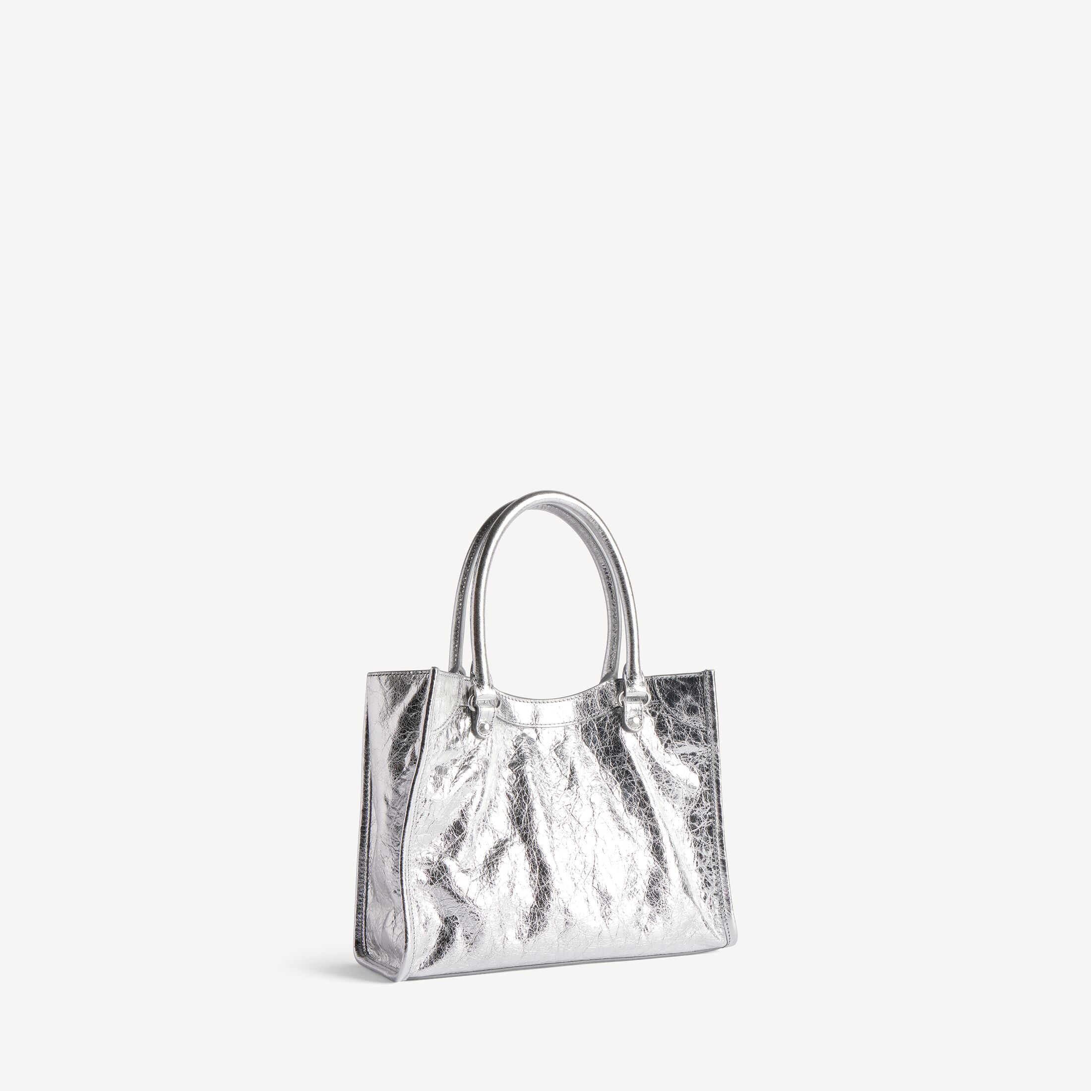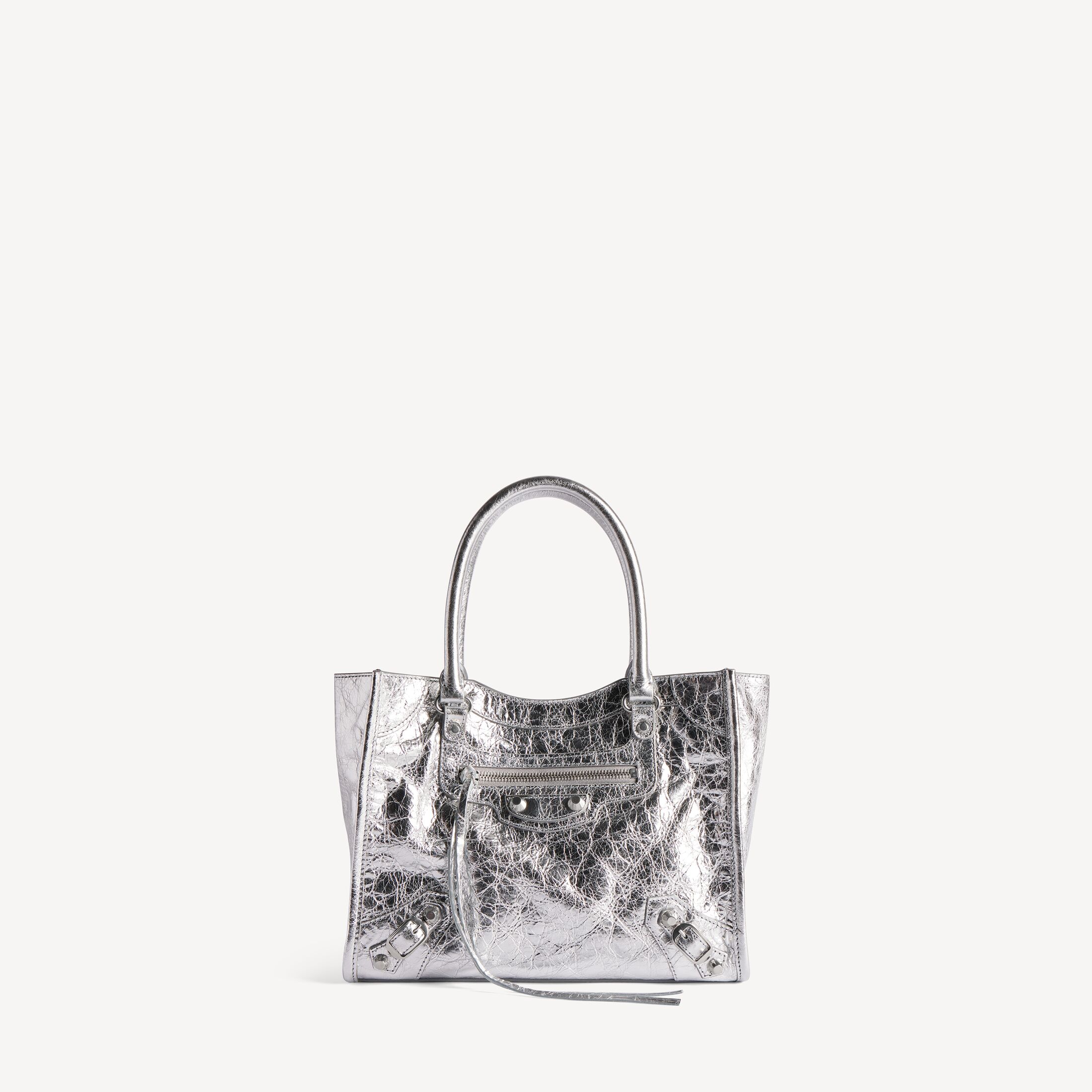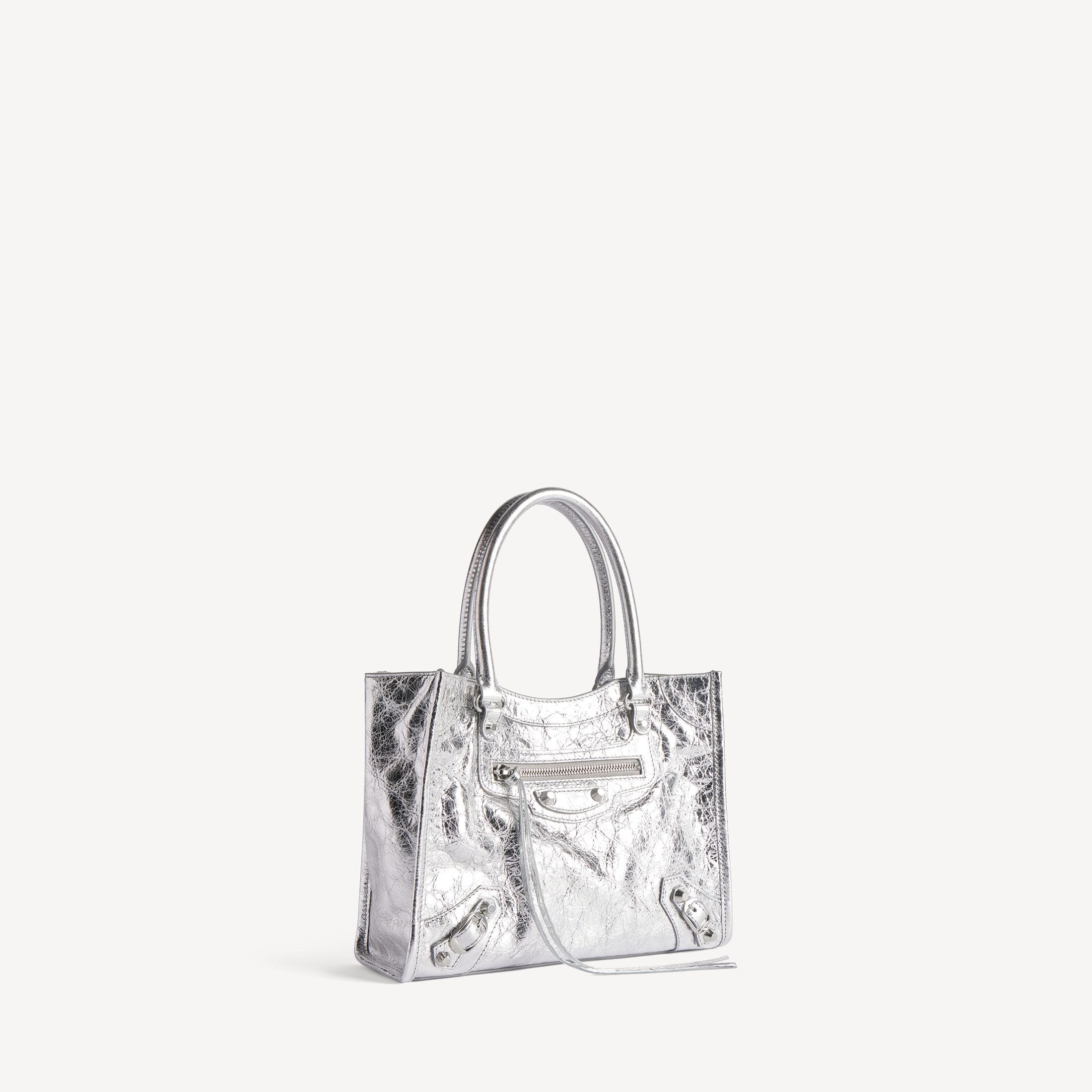Le City银色金属质感细纹羊皮革迷你托特包,饰以闪亮银色金属配件此商品支持花呗分期产品细节