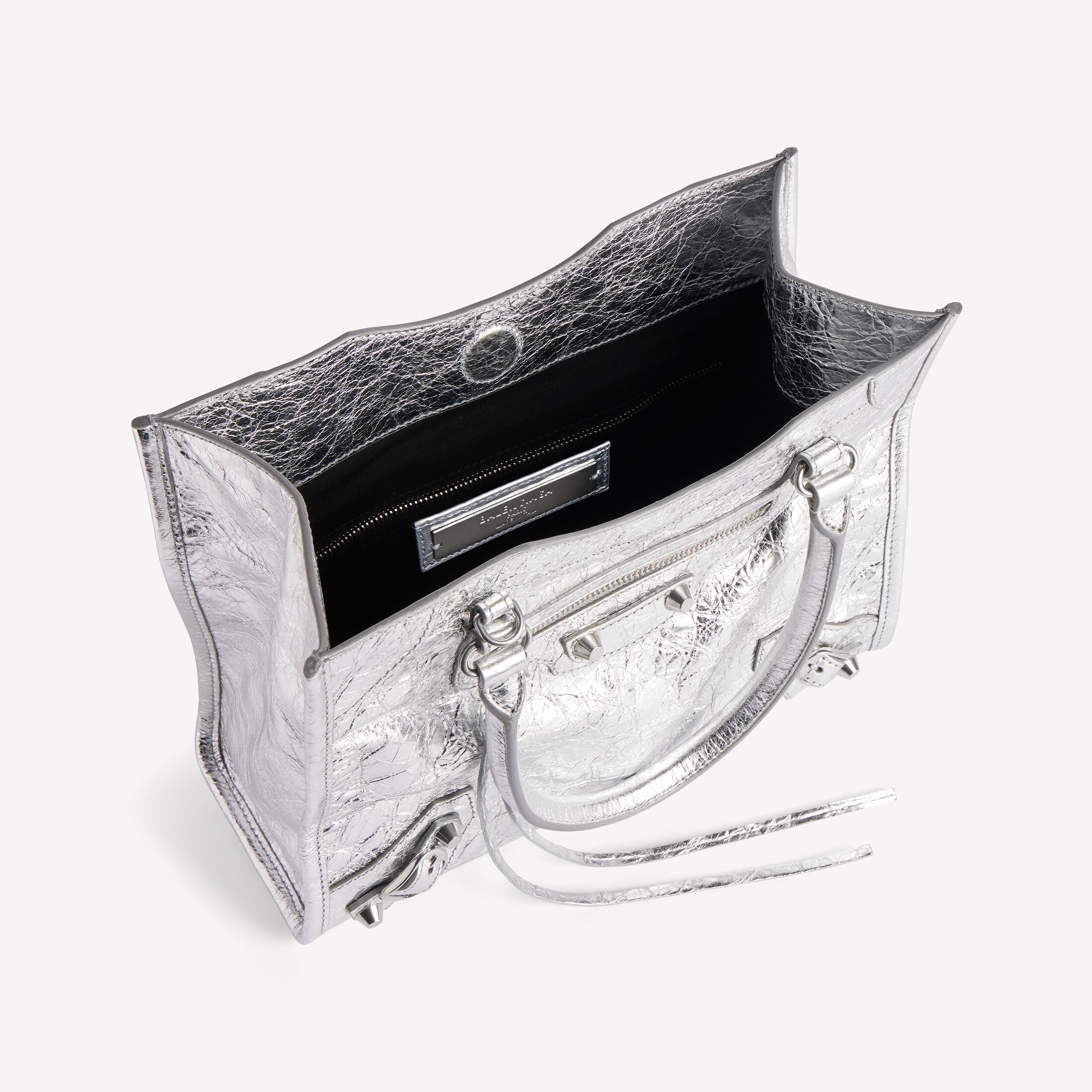 这款 Balenciaga 产品采用高光泽真皮制成。我们无法保证本品在正常穿着的情况下外观始终如一。产品可能出现痕迹和不规则现象, 但这归因于布料材质和工艺, 不应被视作瑕疵。
