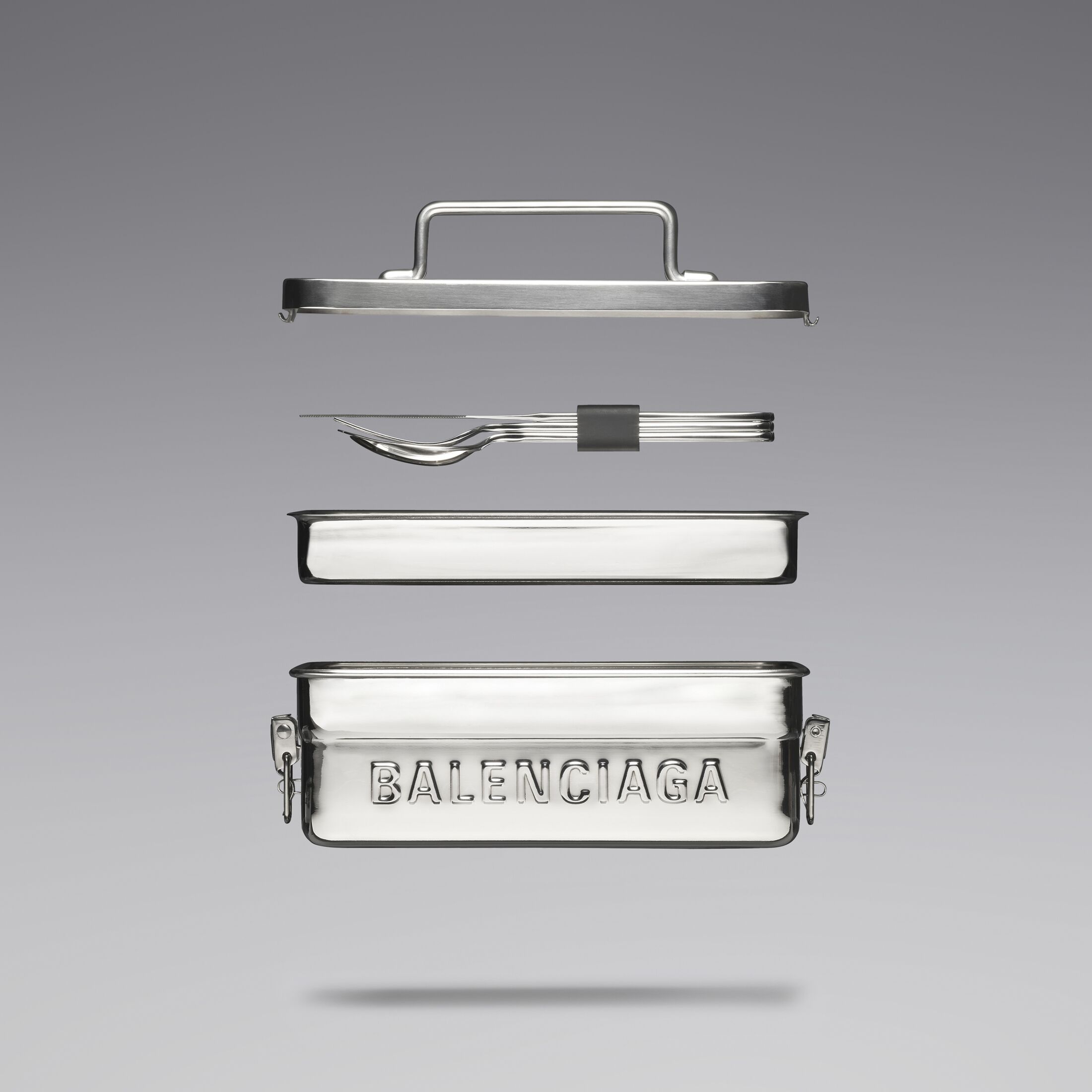 本款 Balenciaga 不銹鋼午餐盒和餐具套裝由 Panter & Tourron 設計, 用於代替一次性食品包裝。