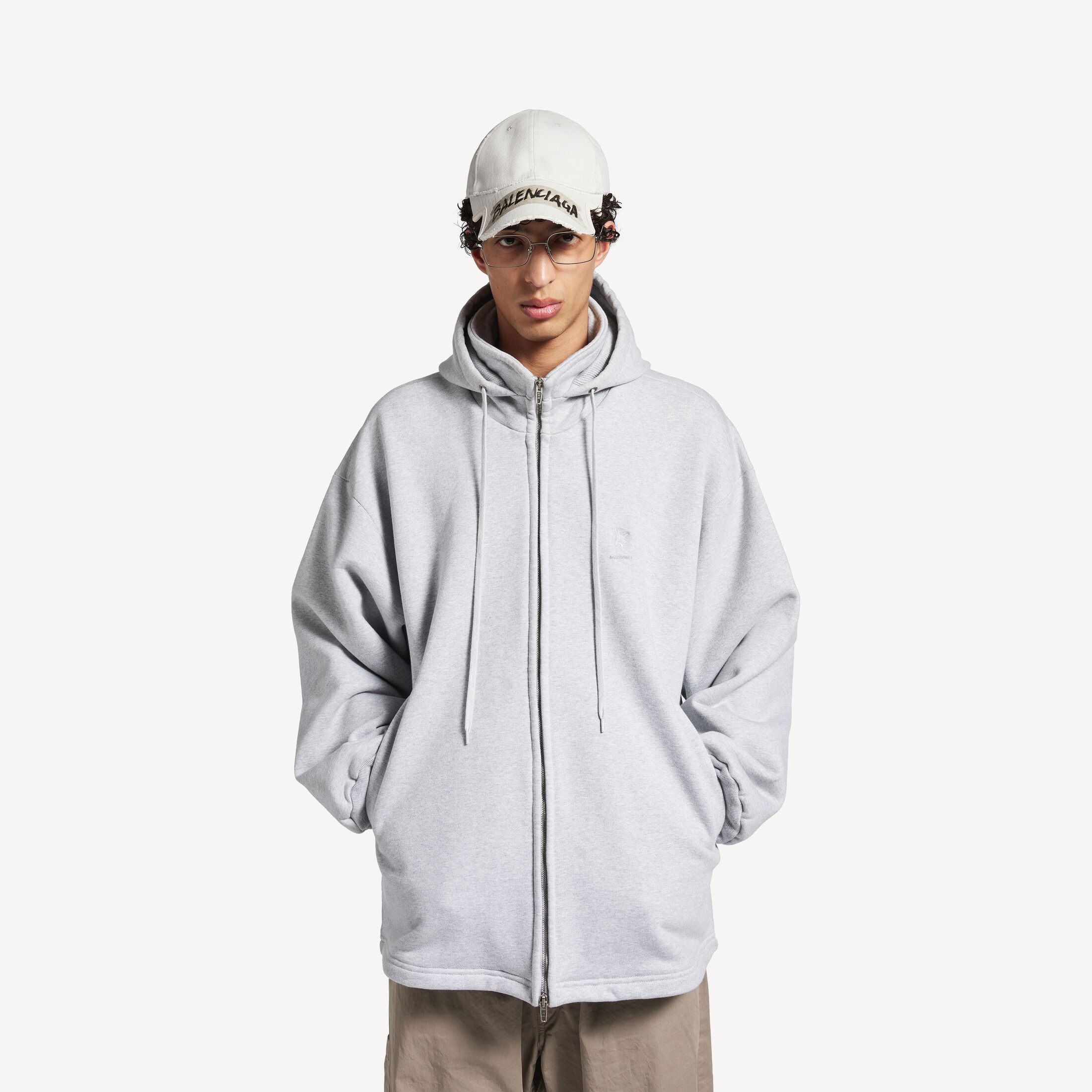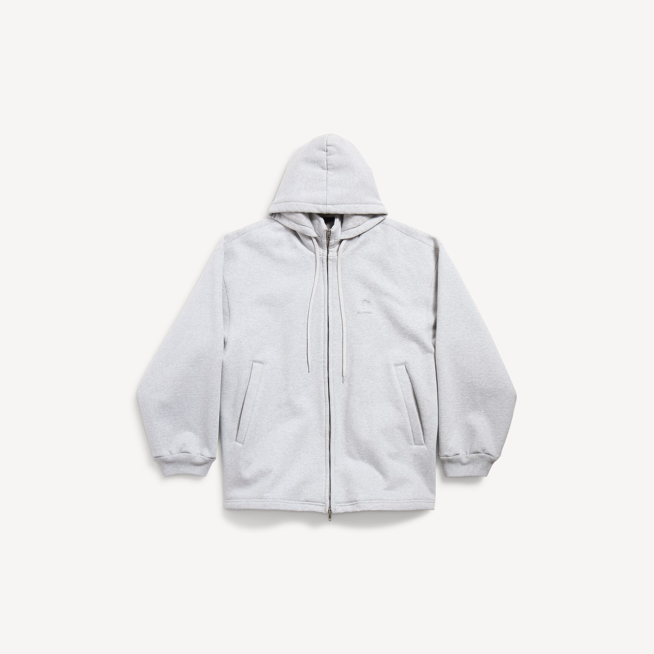 Lion Outerwear Hoodie浅杂灰色拉链连帽卫衣,亮相于Balenciaga 2026春季系列Look 22。此商品支持花呗分期尺码 (法国)