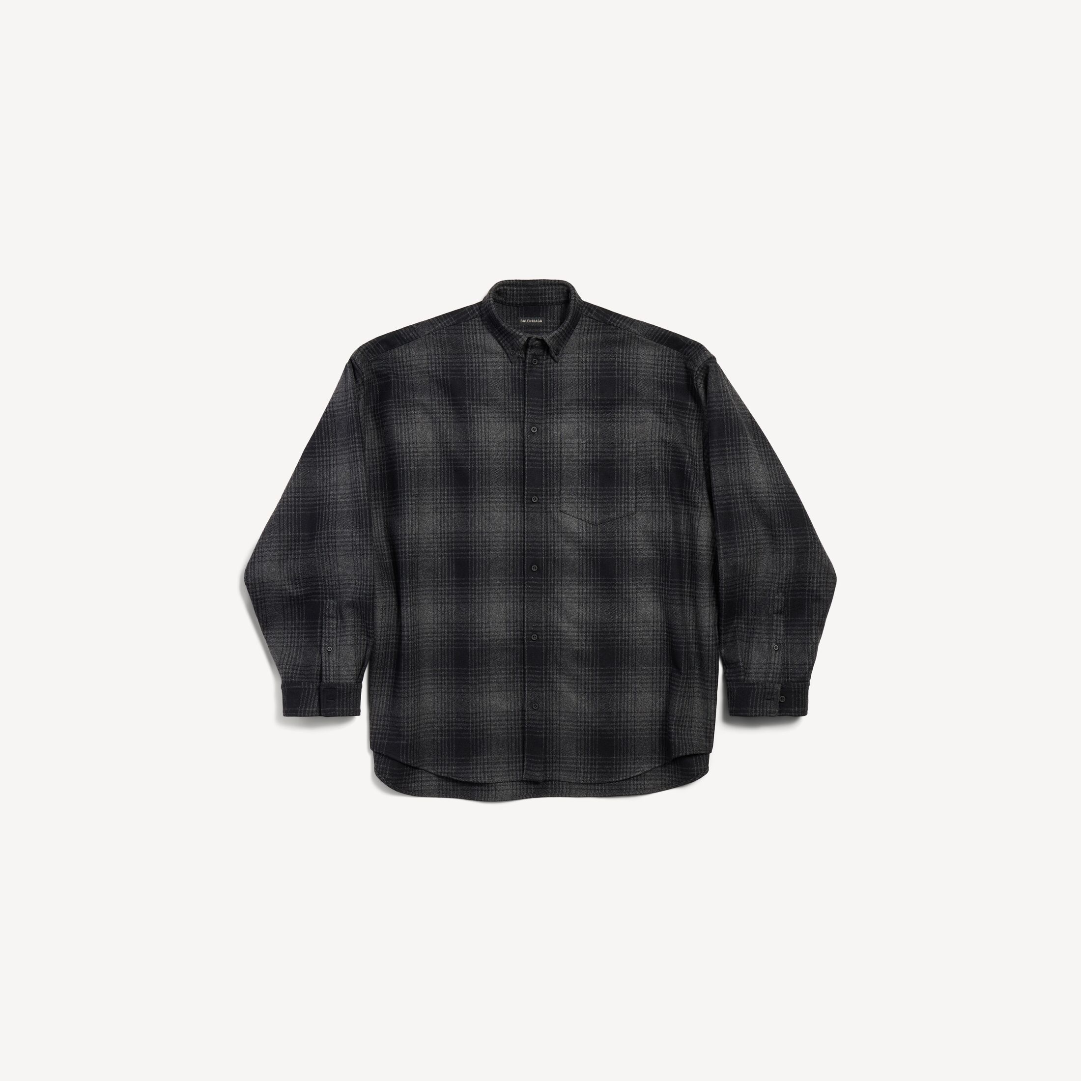 Balenciaga灰色和黑色混纺羊毛法兰绒廓形衬衫此商品支持至高12期花呗分期免息尺码 (法国)