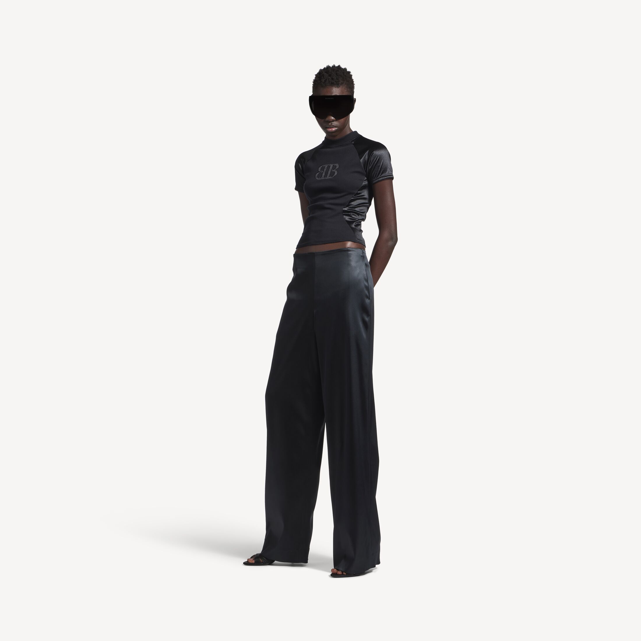Minimal女士黑色弹力厚实缎面垂坠长裤此商品支持花呗分期