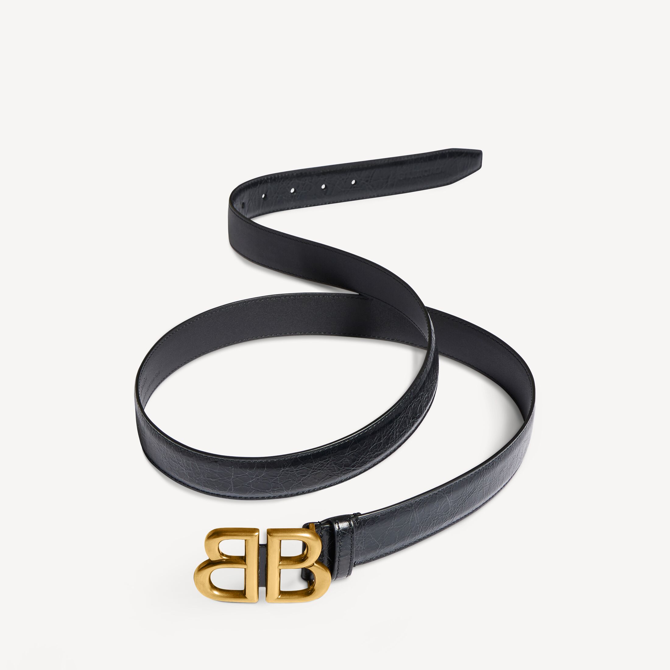 Monaco黑色细纹牛皮革腰带,饰以做旧金色金属配件 此商品支持花呗分期尺码 (法国)