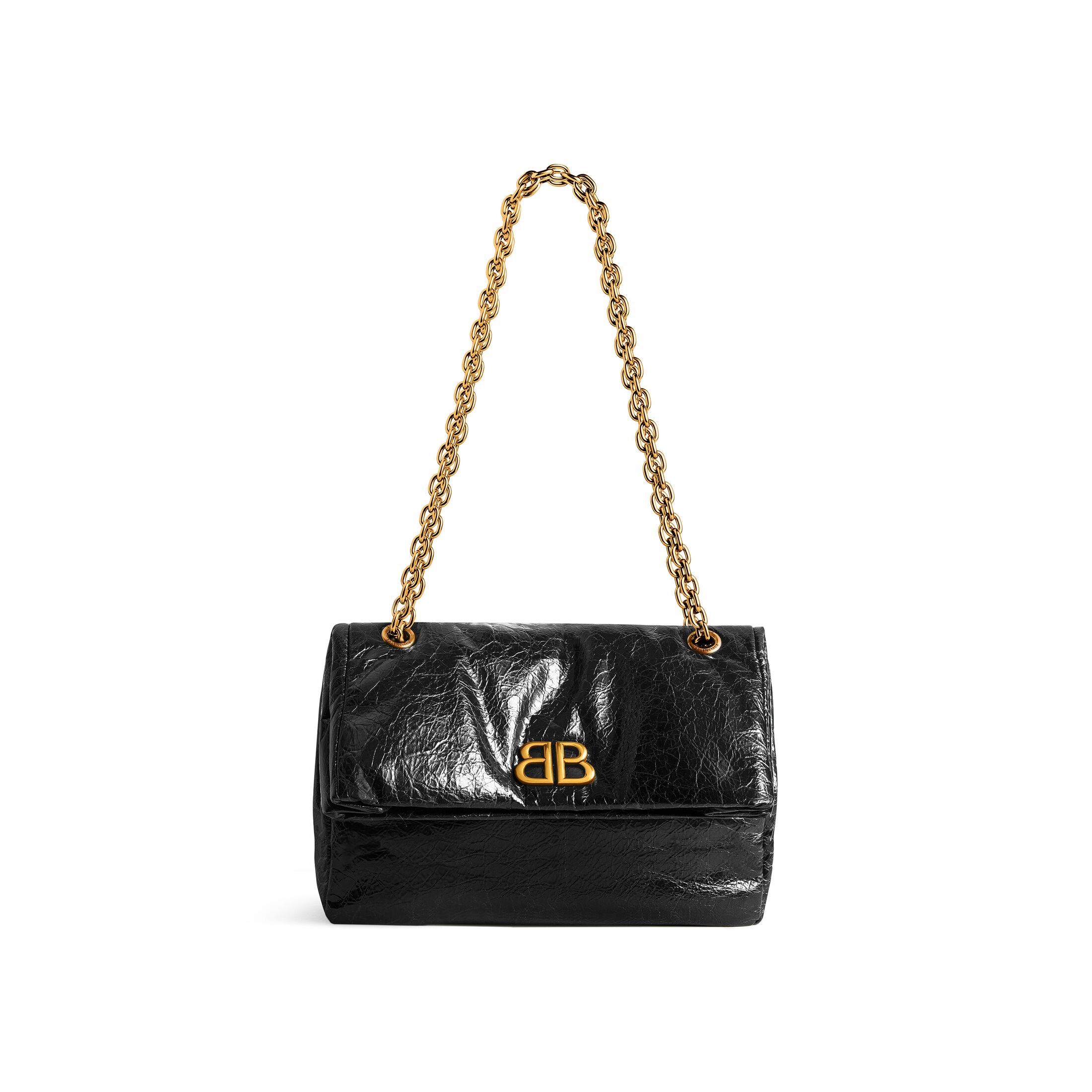 Monaco黑色细纹牛皮革小号链带包,饰以做旧金色金属配件此商品支持花呗分期• 尺寸:长27.9 x 高18 x 宽9.9厘米