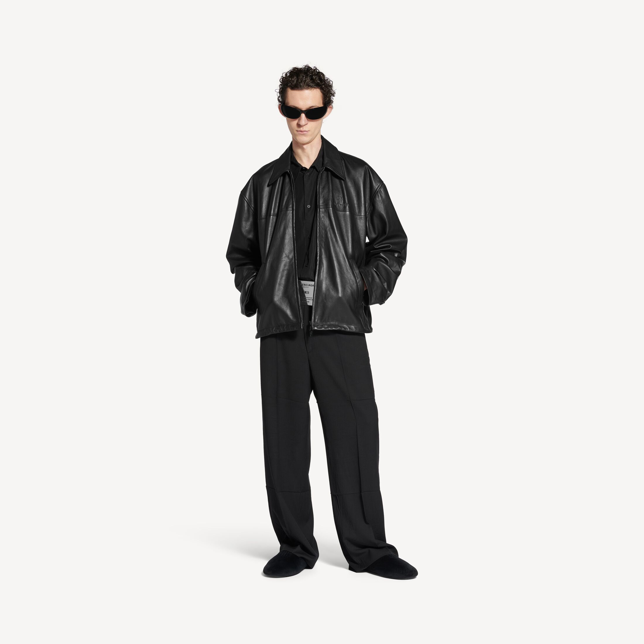 Nano BB男士黑色超柔软皮革拉链夹克,亮相于2025秋季系列Look 20。此商品支持花呗分期尺码 (法国)