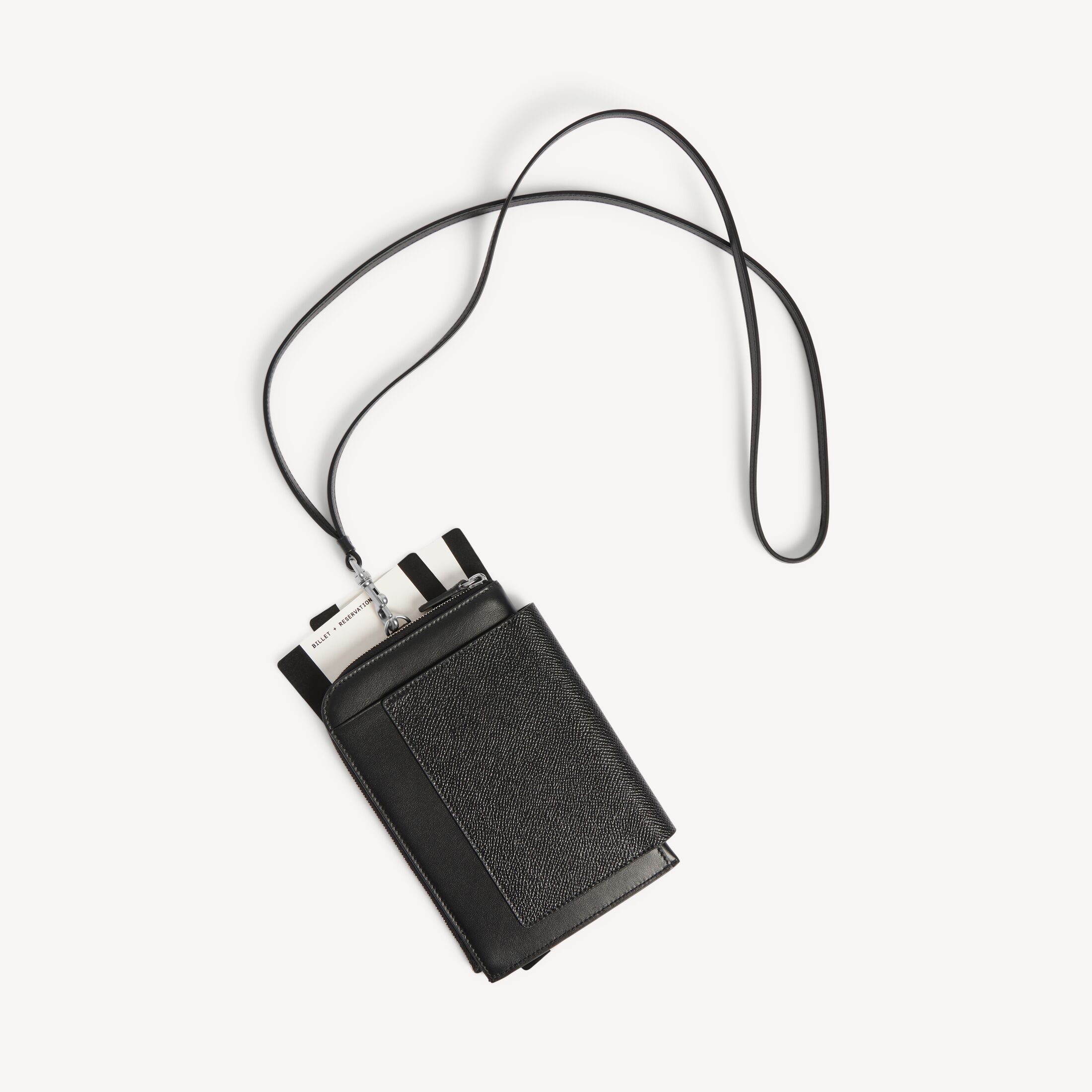 Passport黑色半哑光柔软纹理牛皮革手机包,饰以做旧银色金属配件此商品支持花呗分期
