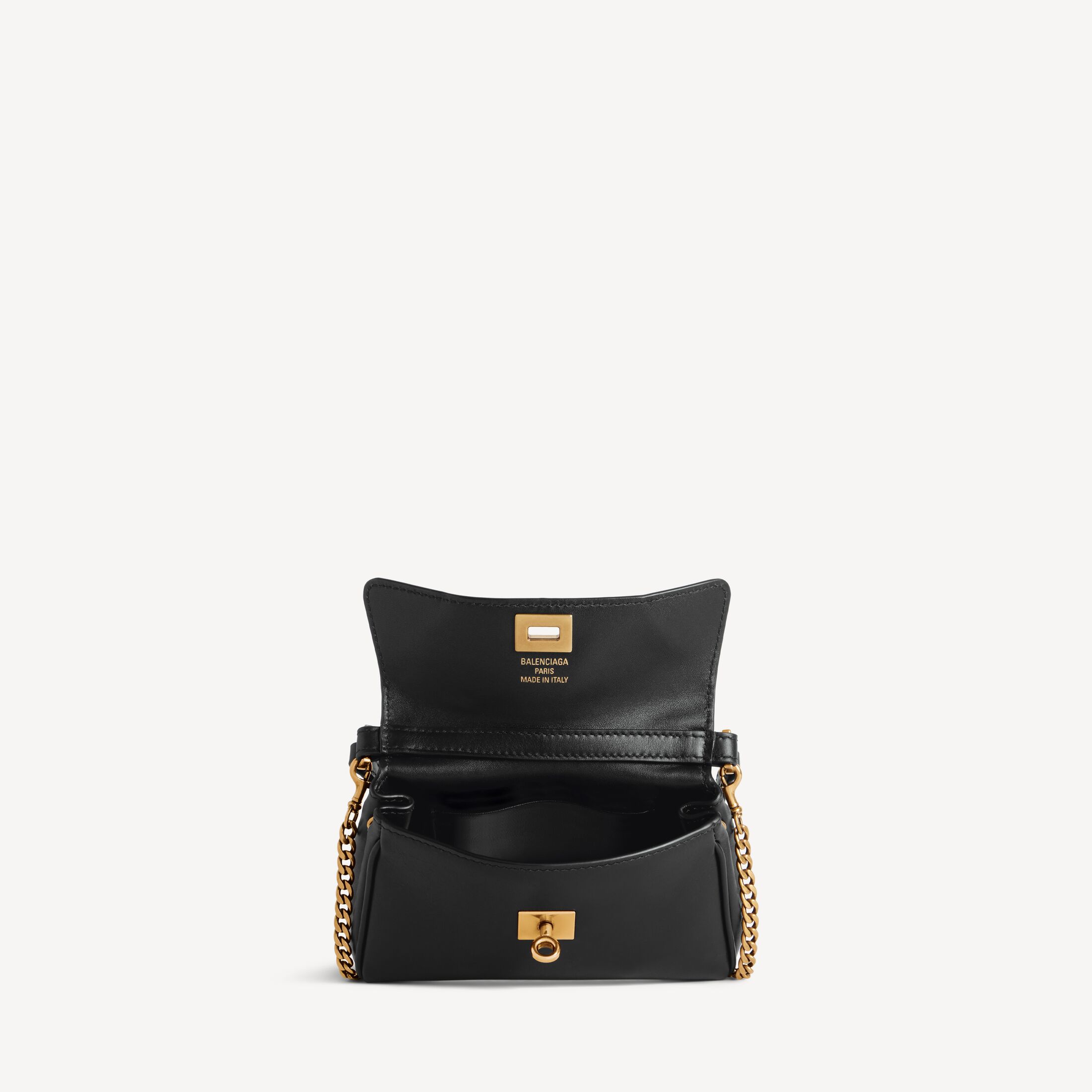 Rodeo Nano黑色光滑牛皮革饰链手袋,饰以做旧金色金属配件 此商品支持花呗分期产品细节