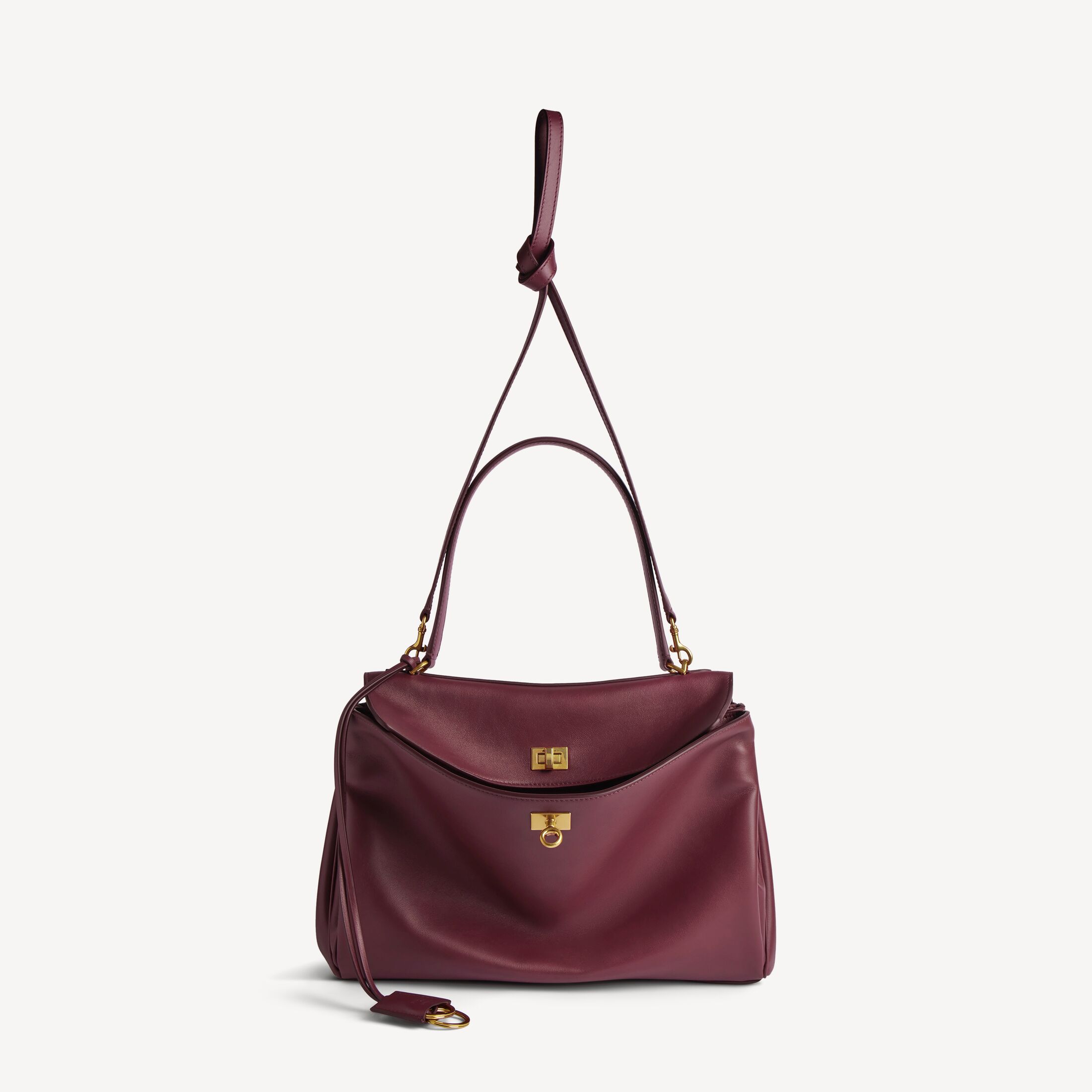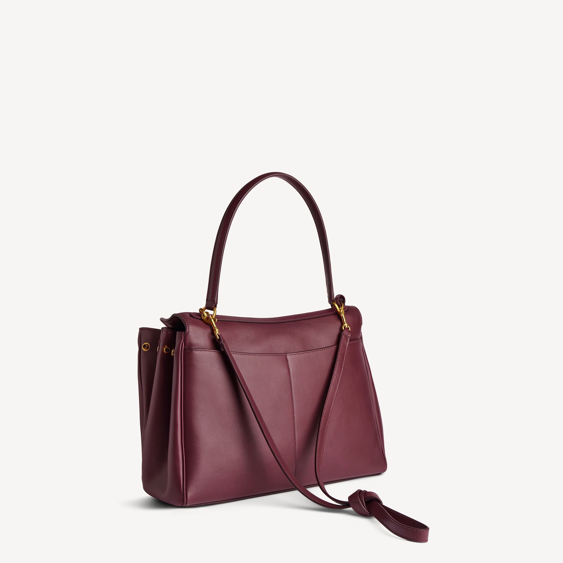 Rodeo深酒红色光滑牛皮革中号手提包,饰以做旧金色金属配件此商品支持花呗分期产品细节