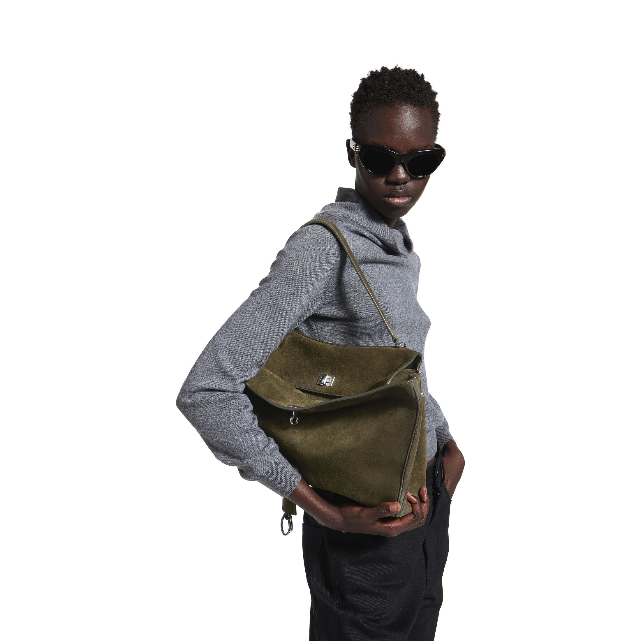 Rodeo卡其褐色蜡处理绒面牛皮革和光滑牛皮革中号手提包,饰以做旧银色金属配件此商品支持花呗分期• 蜡处理绒面牛皮革和光滑牛皮革