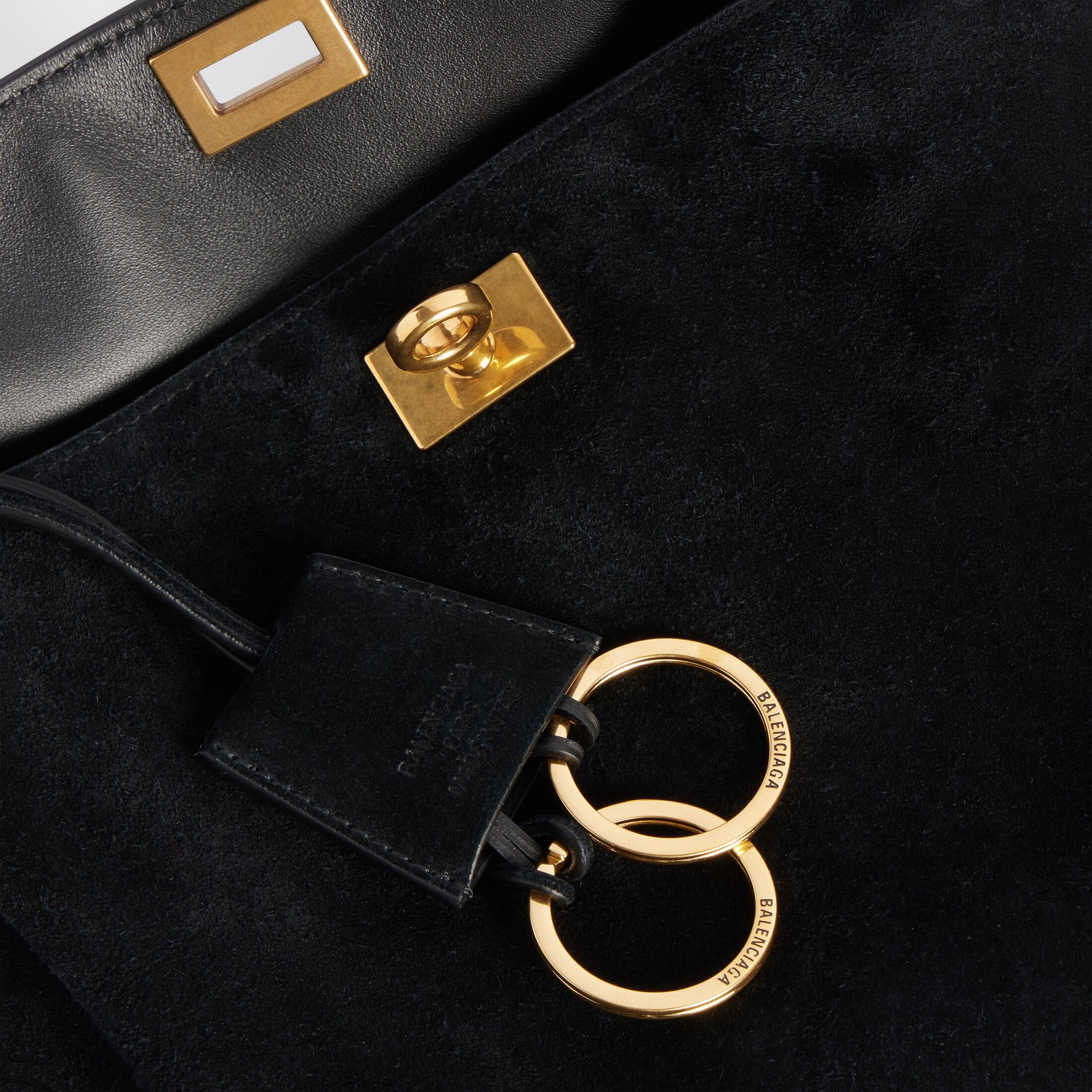 这款 Balenciaga 产品采用纯正绒面牛皮制成。作品可能易发生磨损, 颜色也可能会随着时间推移和日常使用而轻微变化。由于无法确保色牢度, 因此无法保证本品在正常使用的情况下外观始终如一。产品可能出现痕迹和不规则现象, 但不应被视作瑕疵, 而是产品工艺品质的体现。为防止发生色彩转移, 我们建议避免使其直接接触浅色或颜色对比鲜明的衣物或其他表面。产品金属部件应避免接触液体、刺激性化学品以及突然撞击硬质表面。
