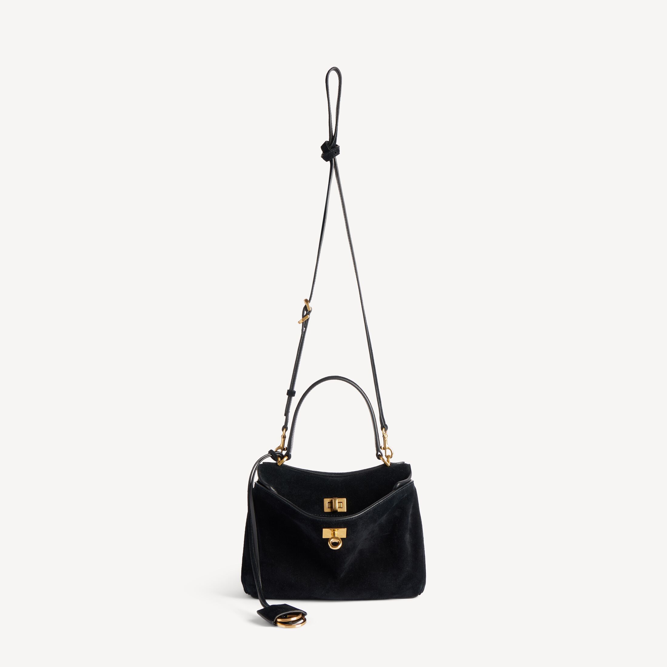 Rodeo黑色绒面牛皮革和光滑牛皮革迷你手提包,饰以做旧金色金属配件此商品支持花呗分期产品细节