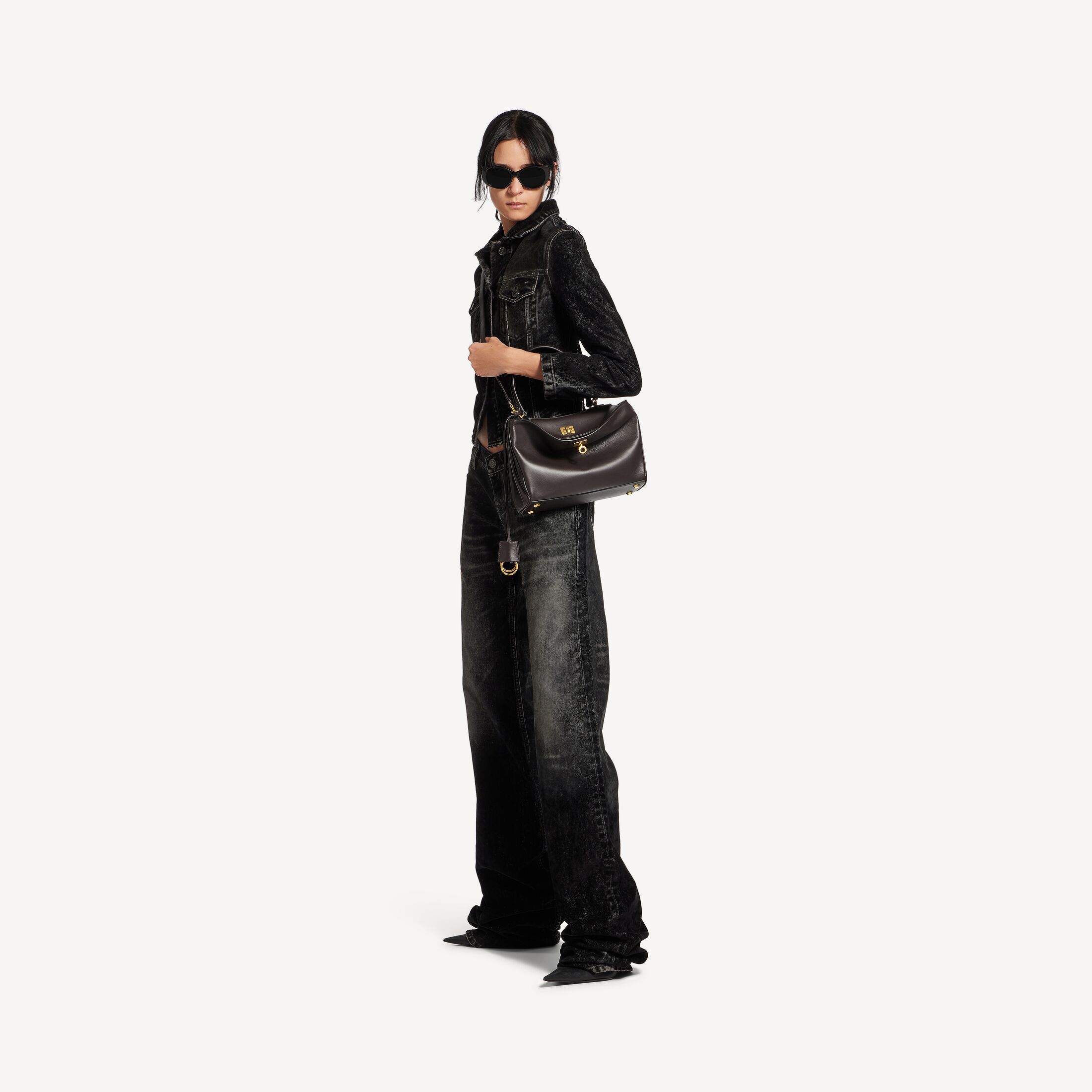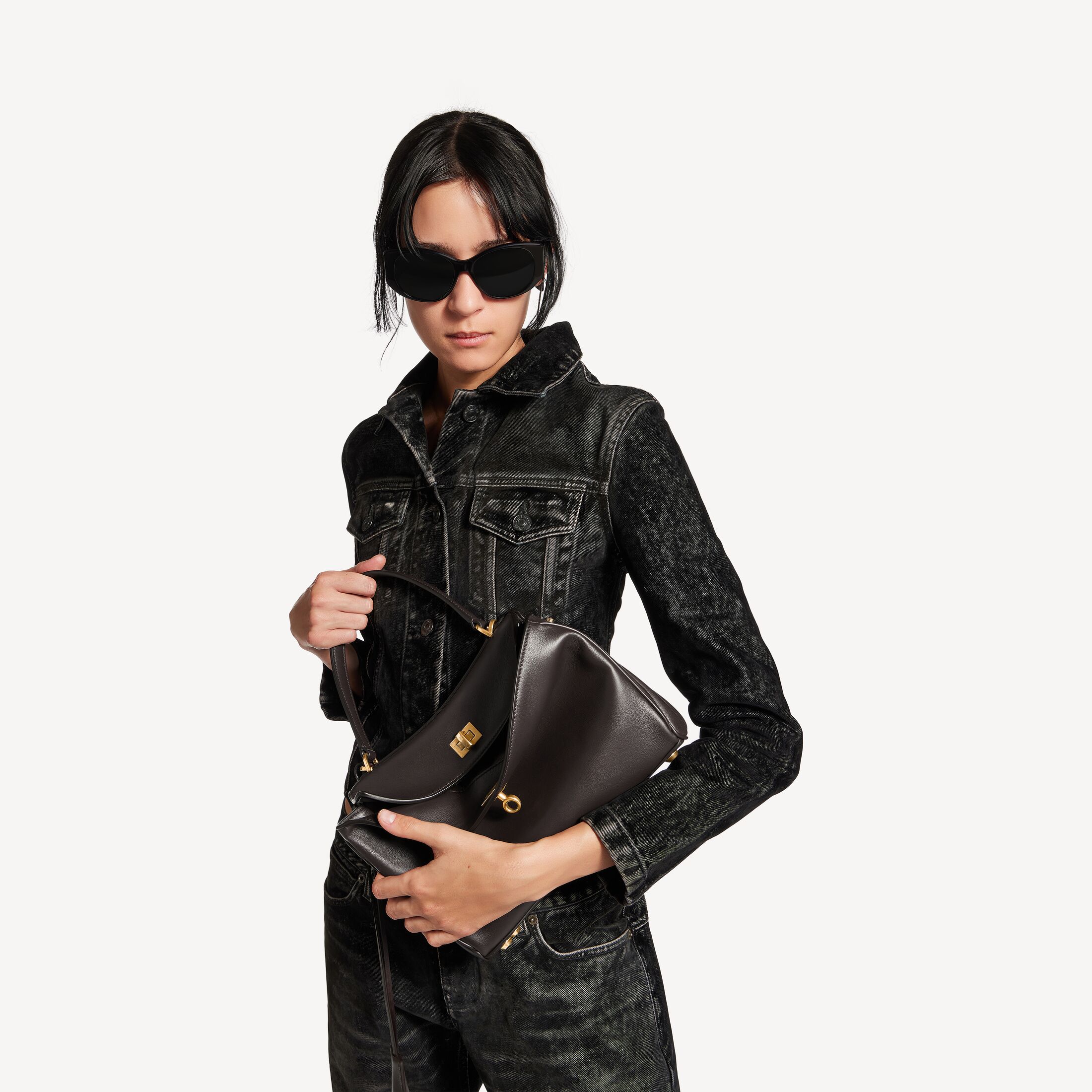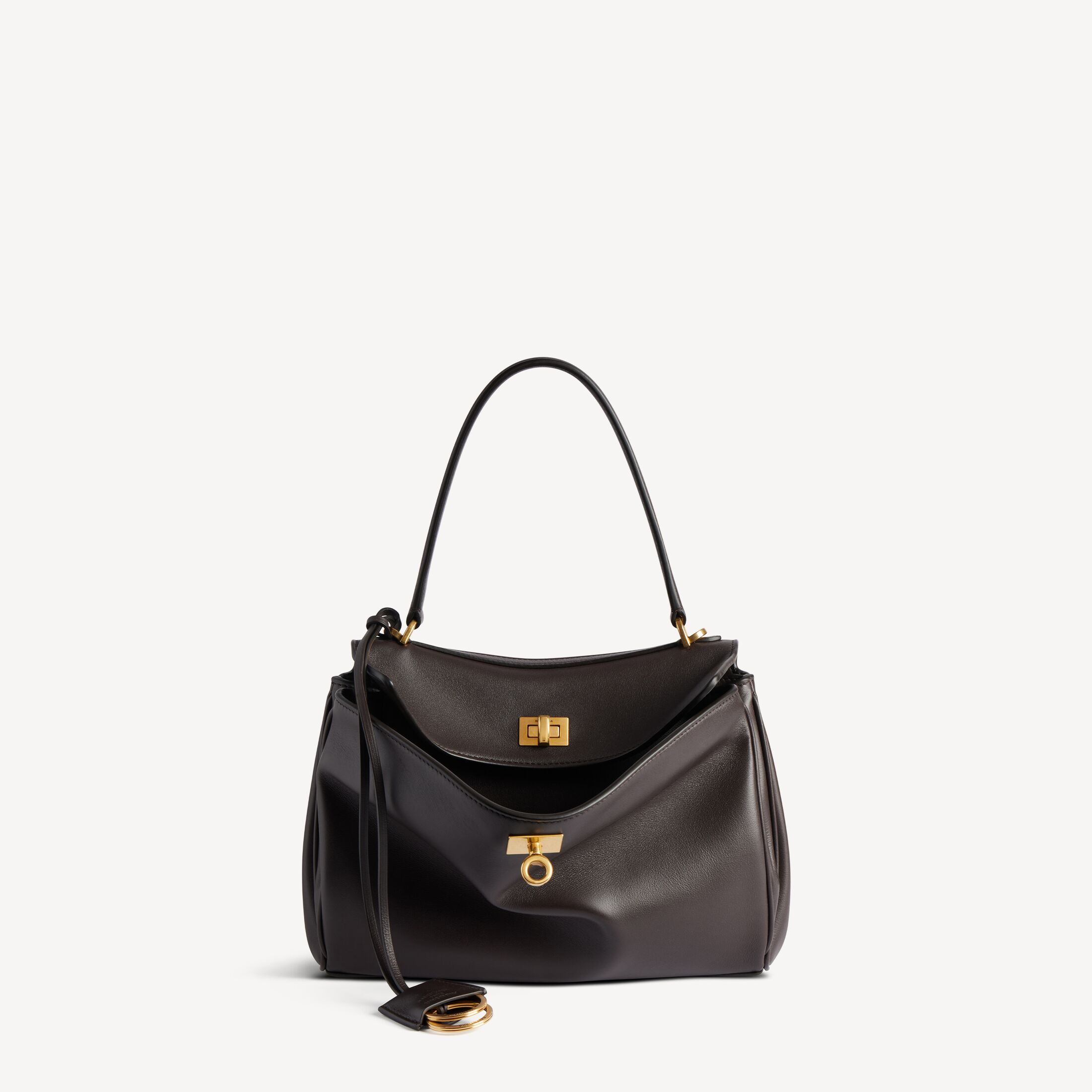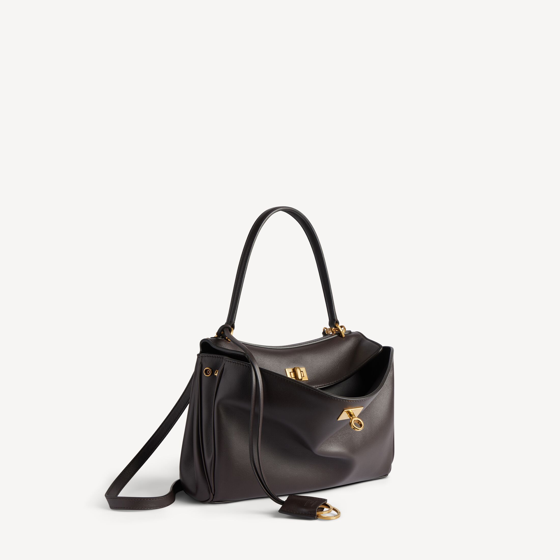 Rodeo深咖啡色光滑牛皮革小号手提包,饰以做旧金色金属配件此商品支持花呗分期