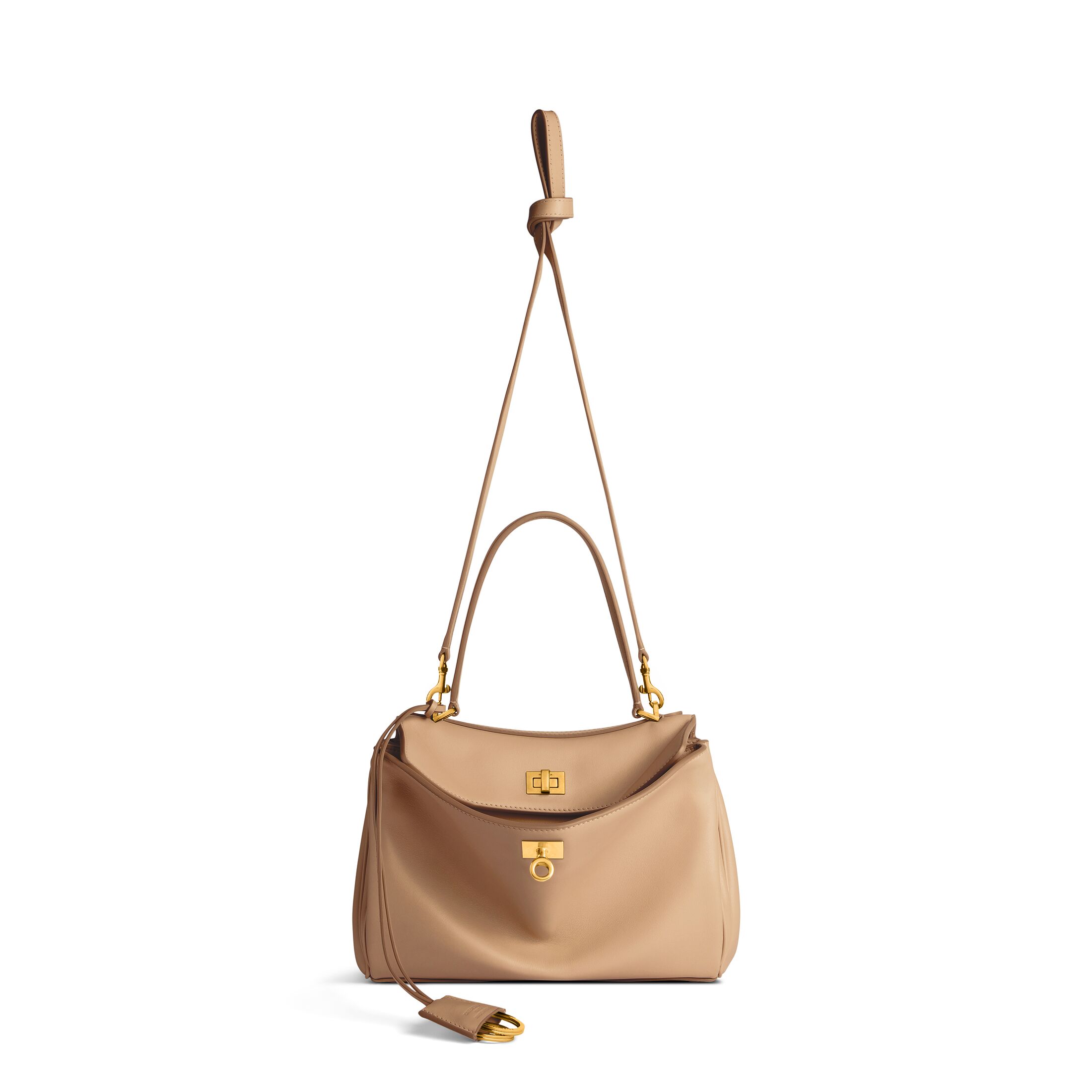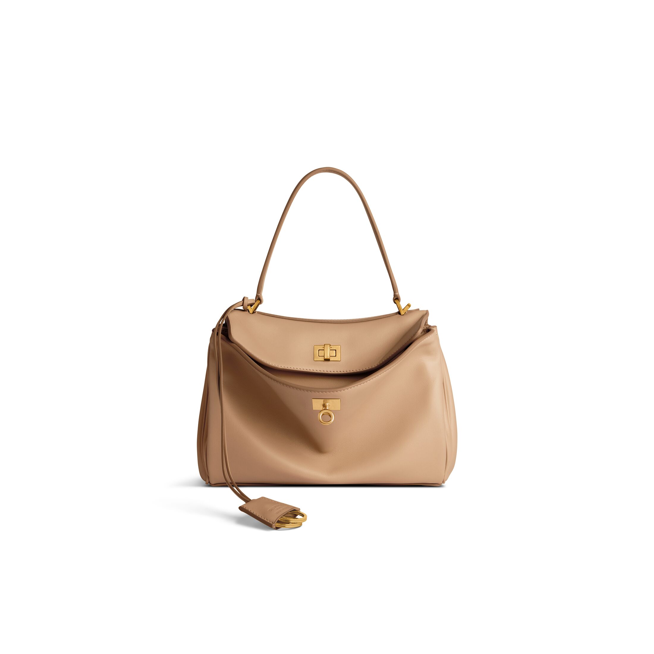 Rodeo拿铁色光滑牛皮革小号手提包,饰以做旧金色金属配件此商品支持花呗分期• 光滑牛皮革