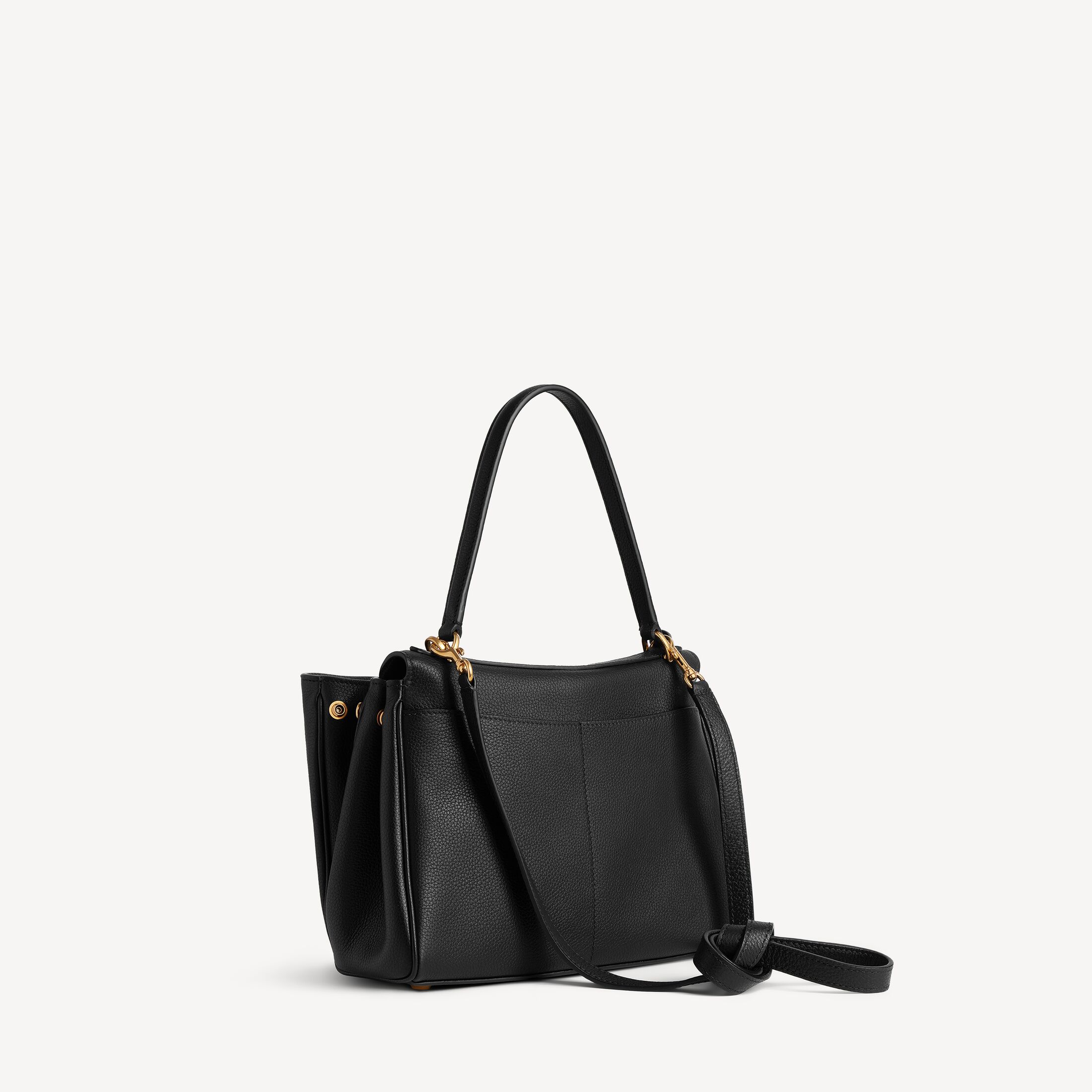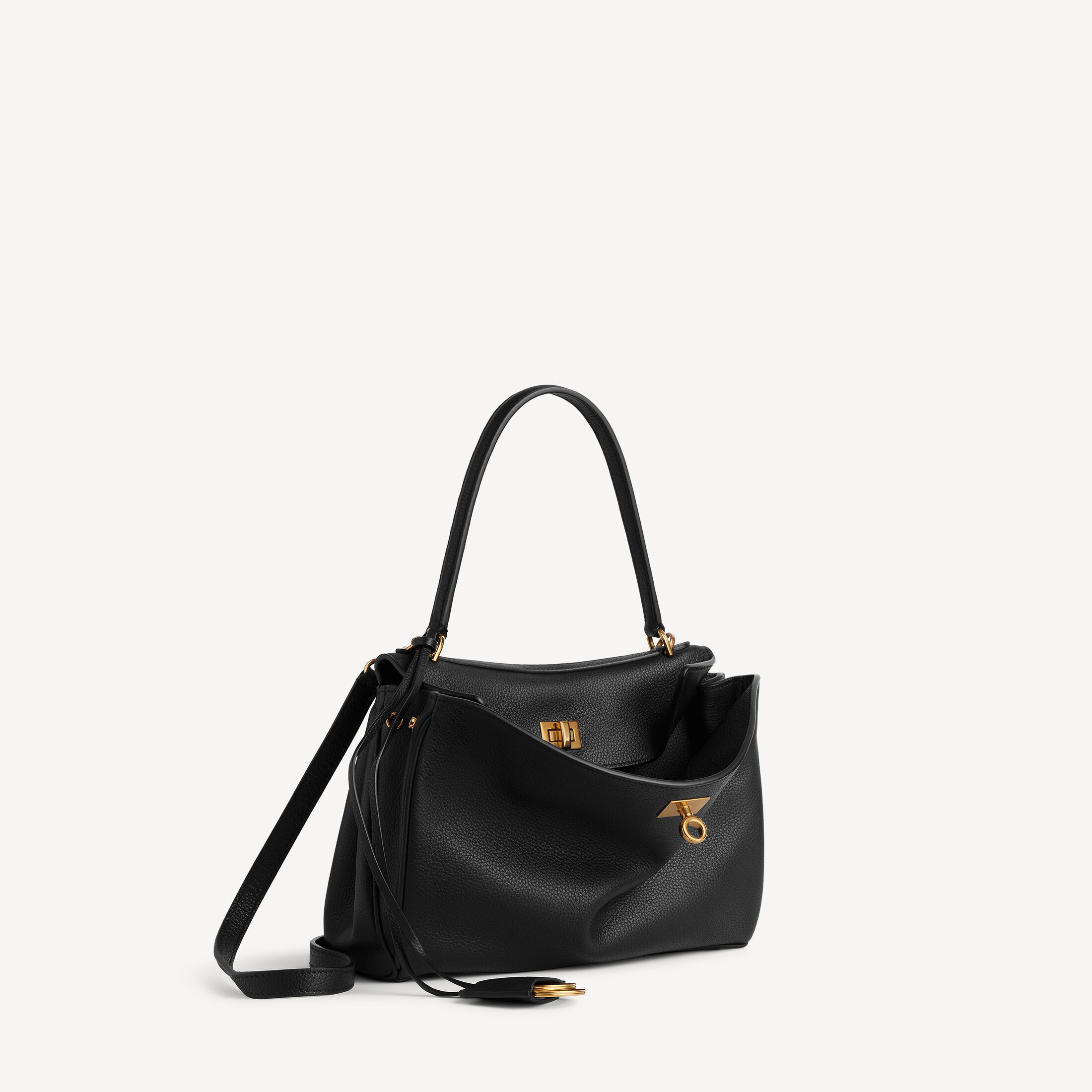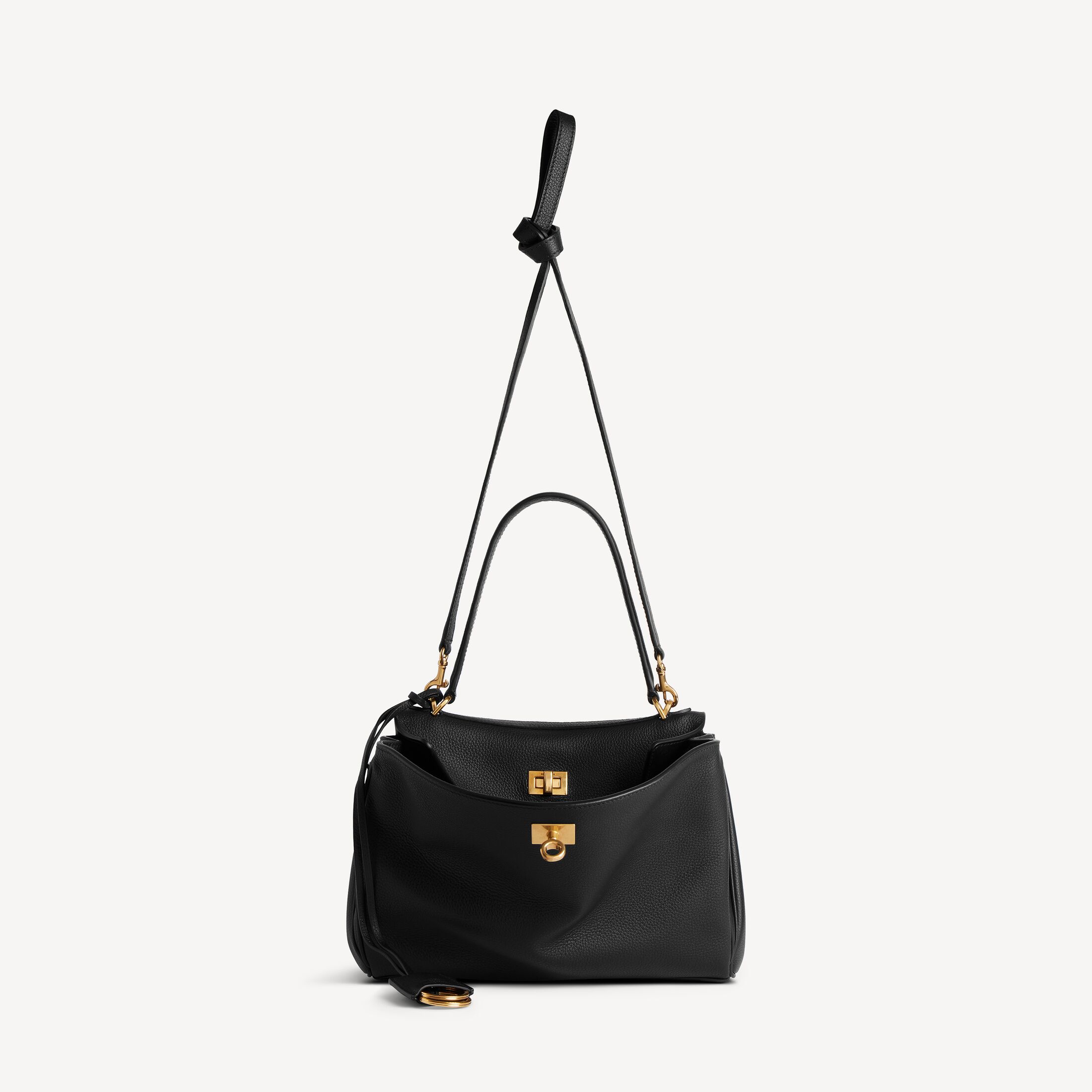 Rodeo黑色粒面牛皮革小号手提包,饰以做旧金色金属配件此商品支持花呗分期