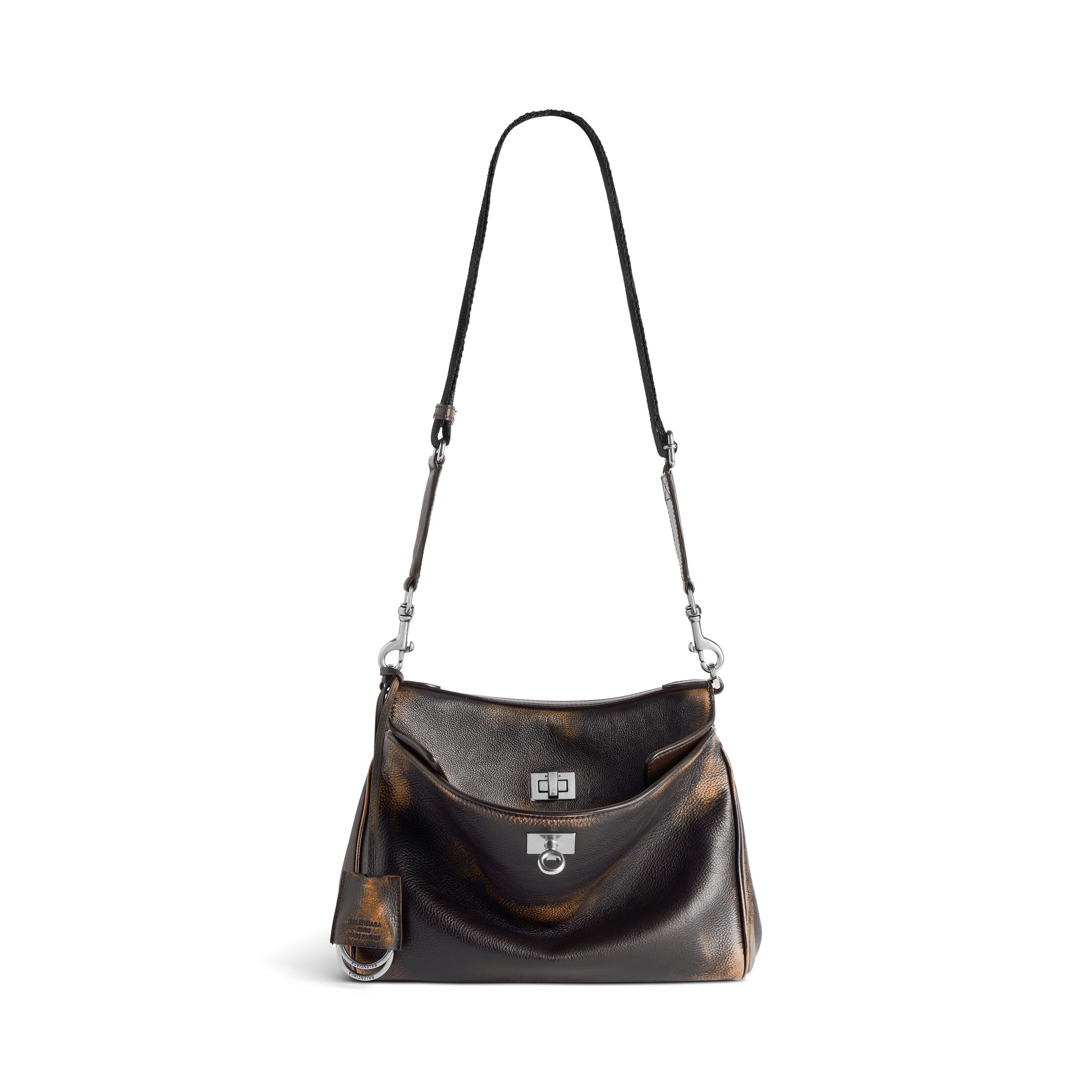 Rodeo浅棕色和深棕色双色做旧效果牛皮革小号邮差包,饰以做旧银色金属配件 此商品支持花呗分期• 尺寸:长24.3 x 高17 x 宽10.9厘米