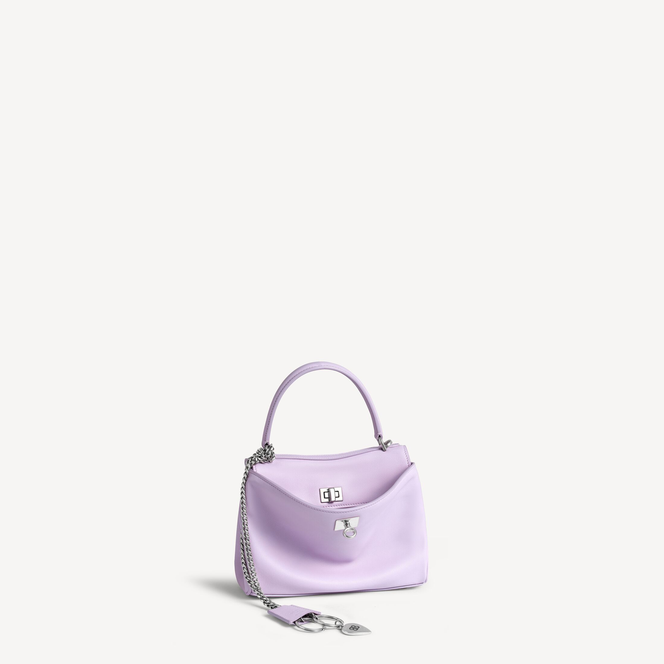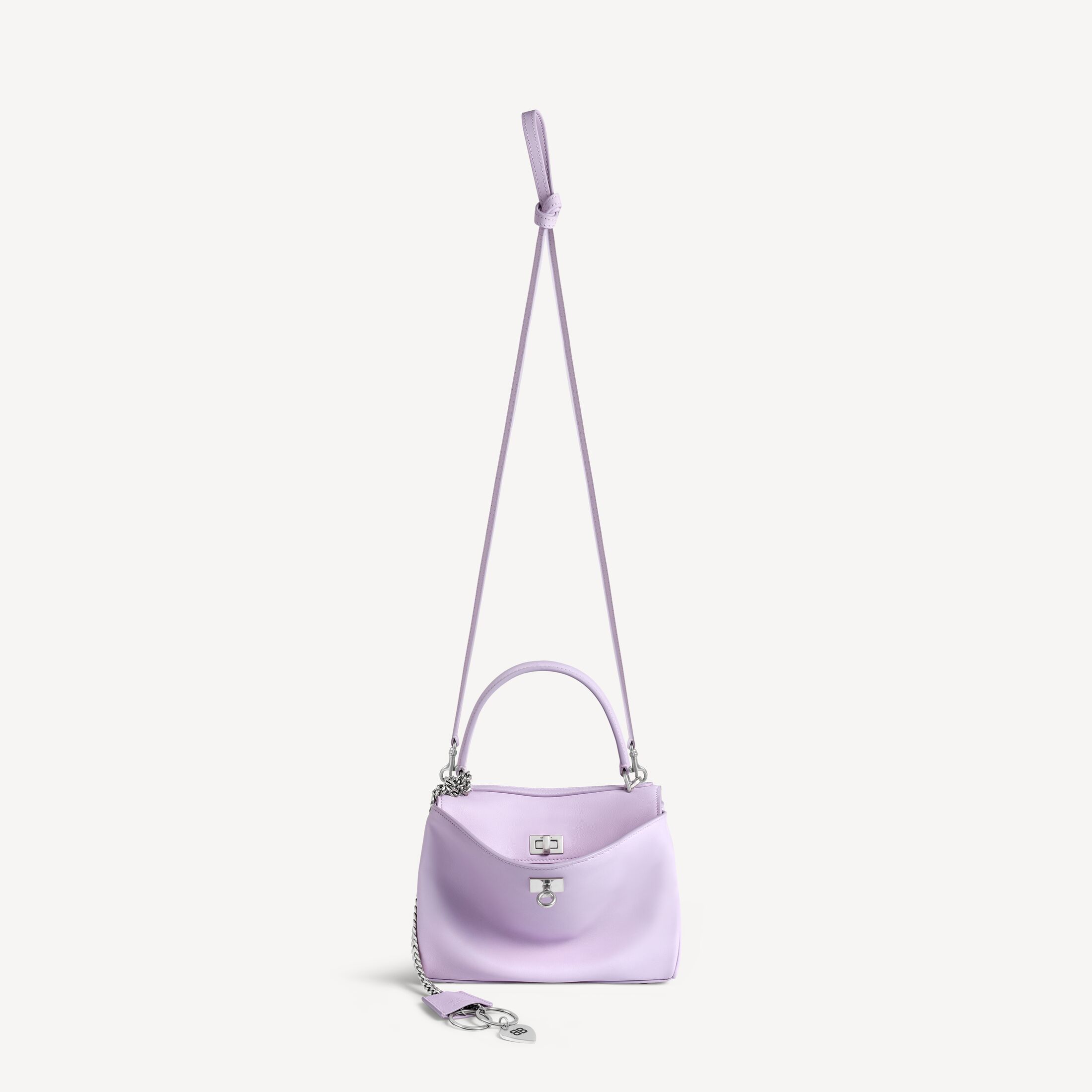Rodeo薰衣草色光滑牛皮革链带和钥匙扣吊坠迷你手提包,饰以做旧银色金属配件 此商品支持花呗分期