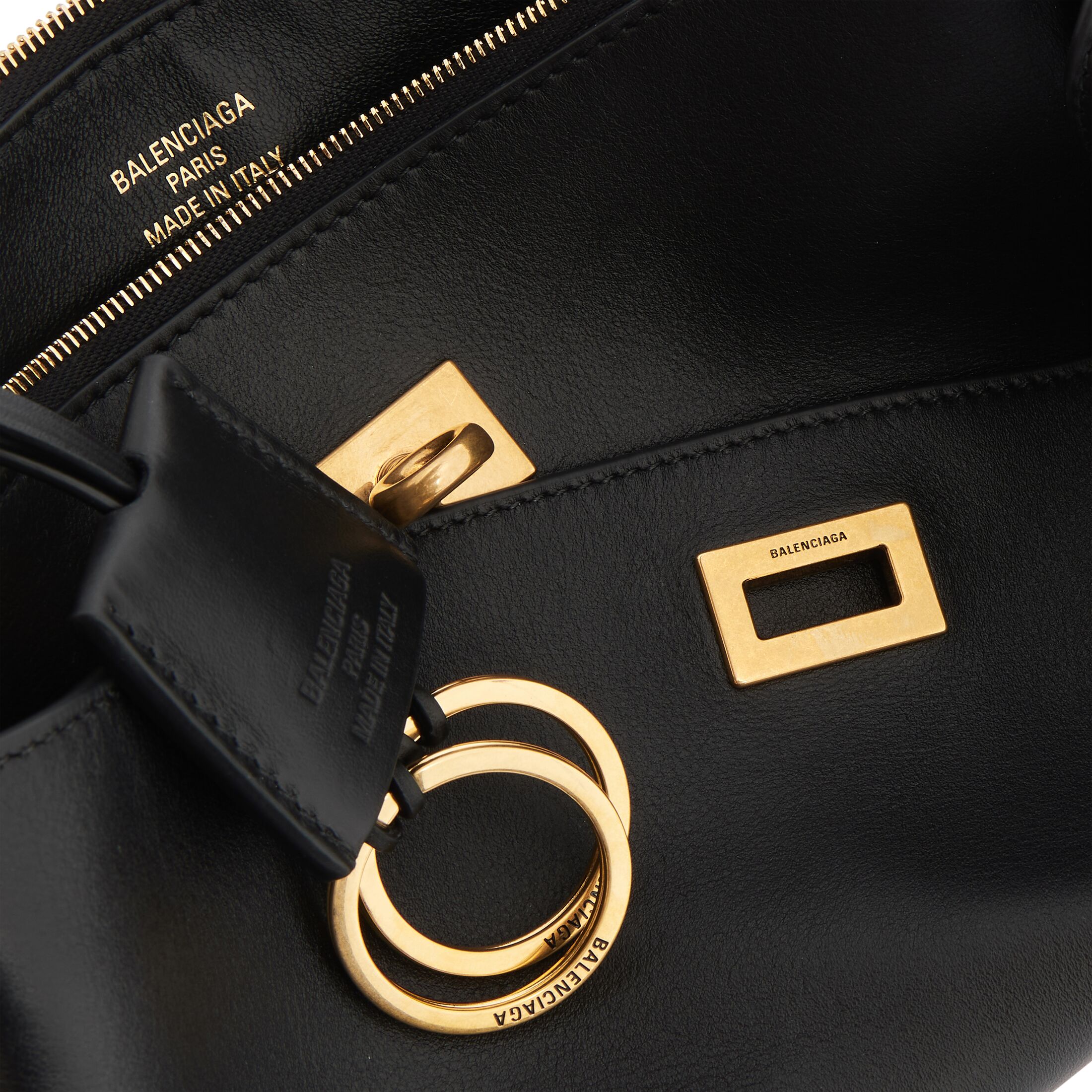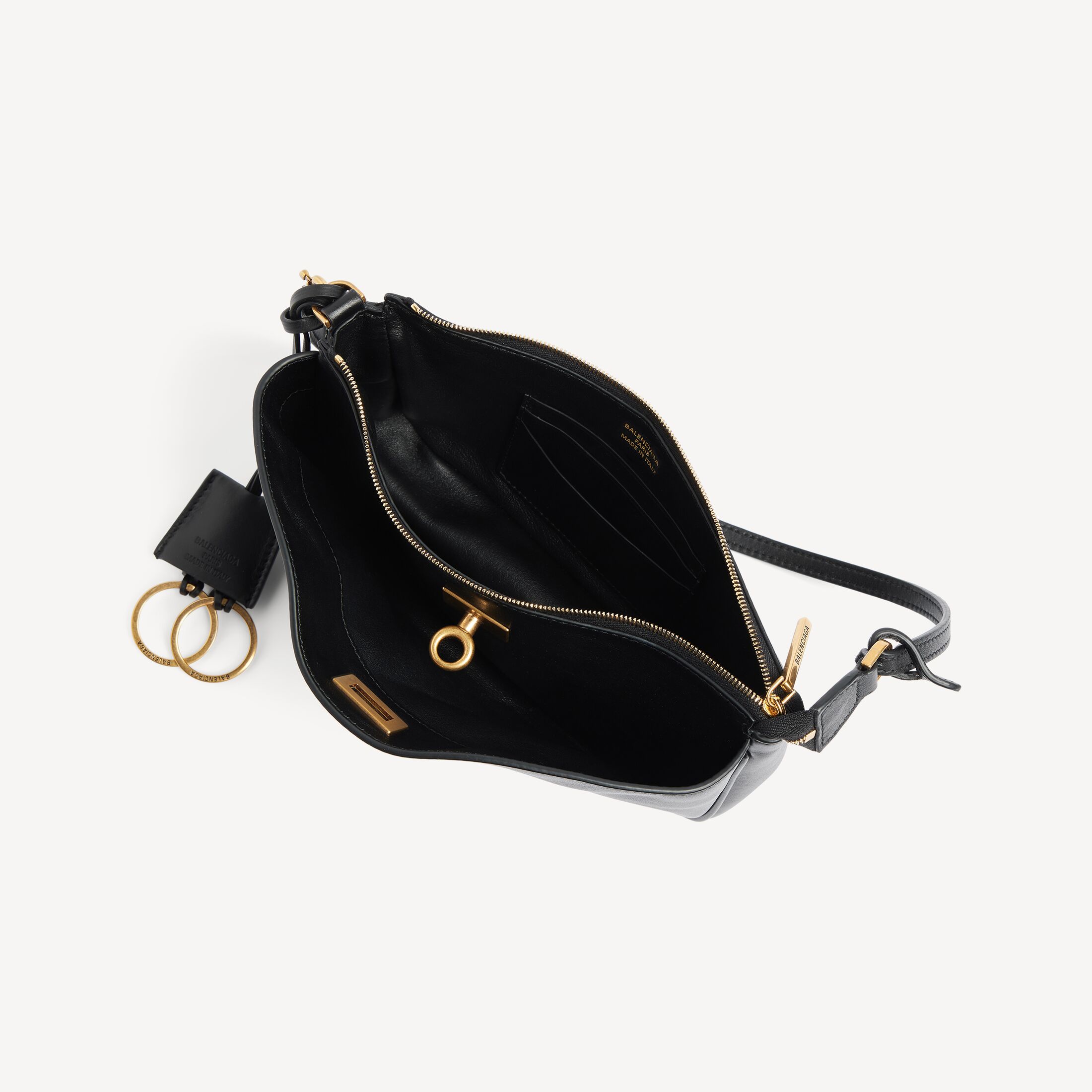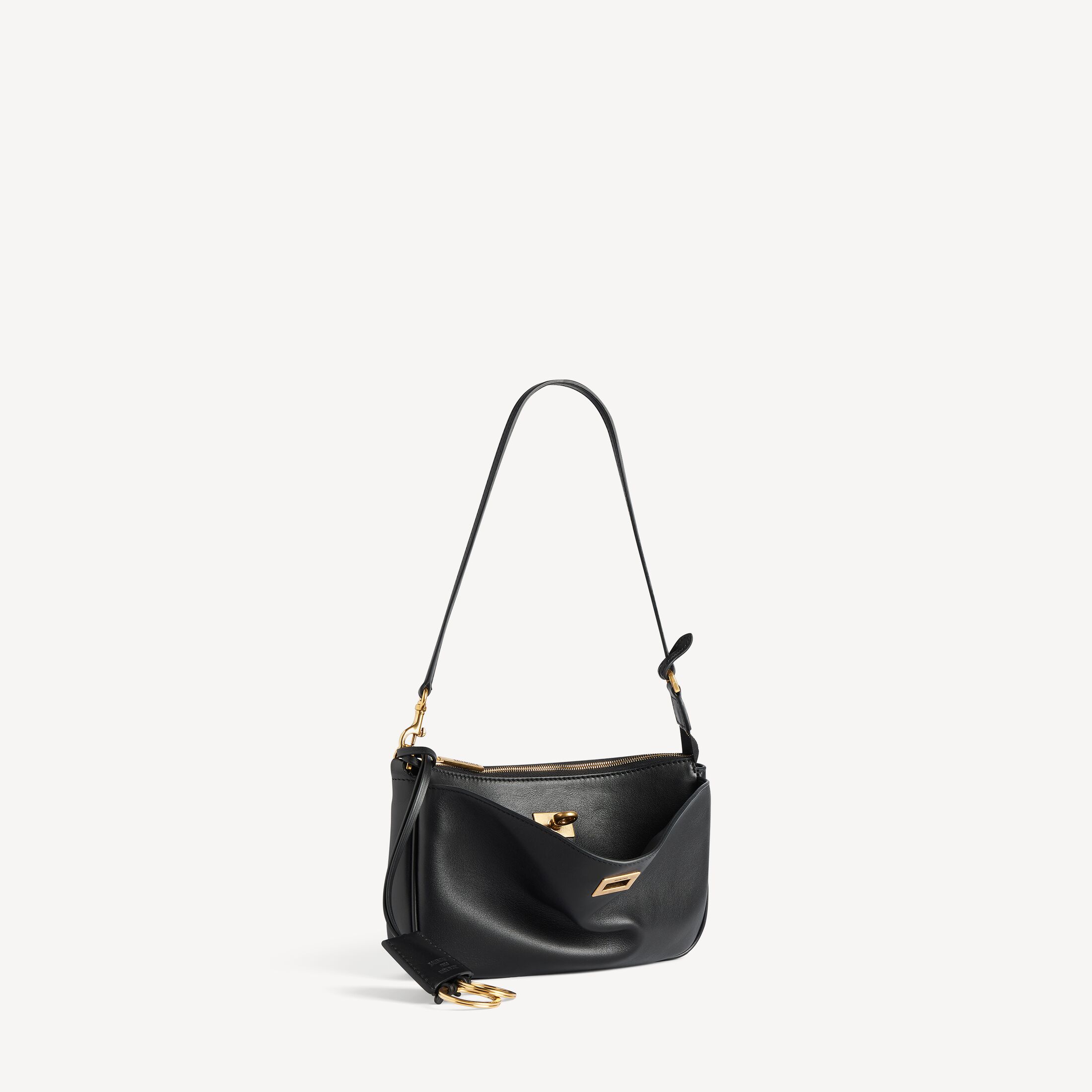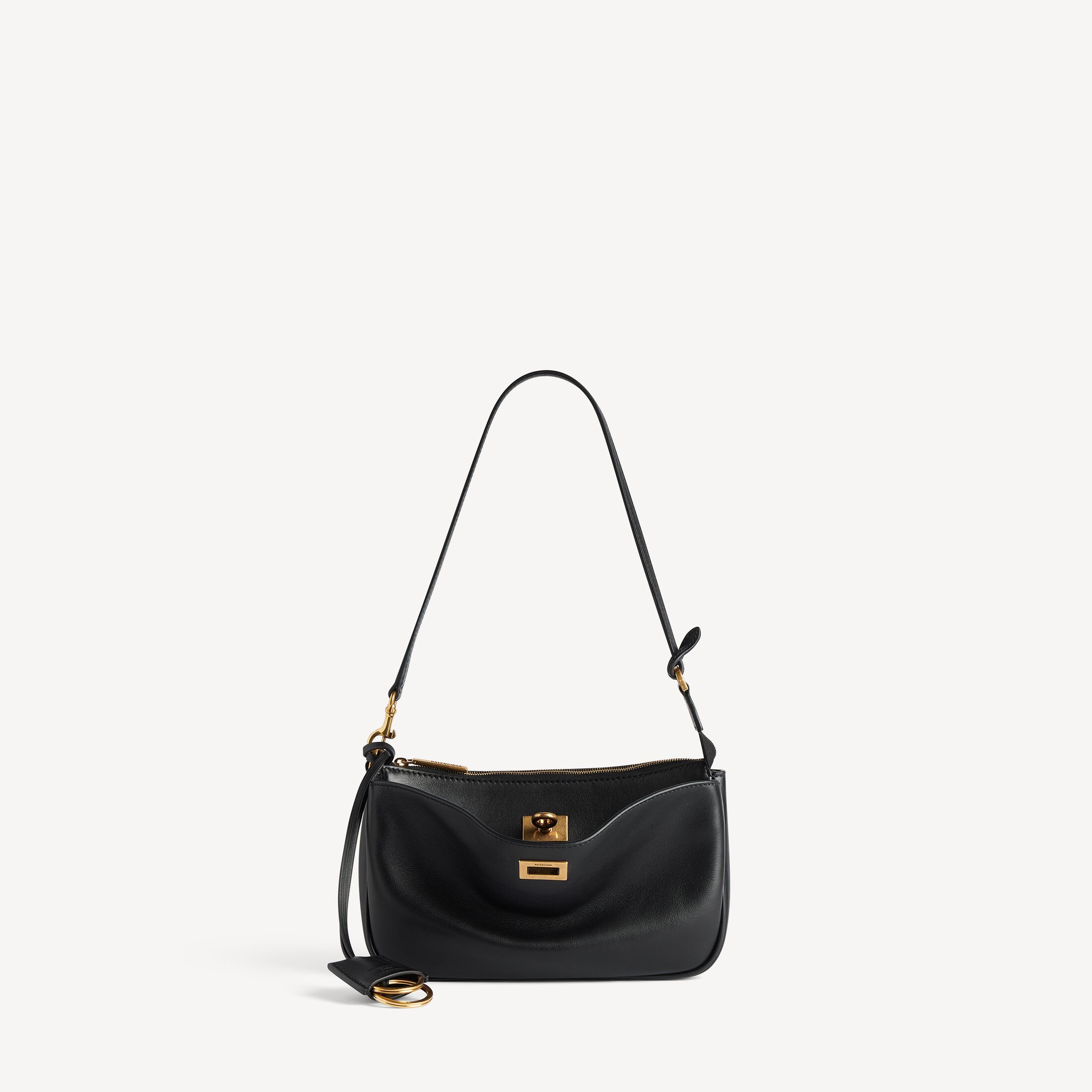 Rodeo黑色光滑牛皮革单肩包,饰以做旧金色金属配件 此商品支持花呗分期• 光滑牛皮革