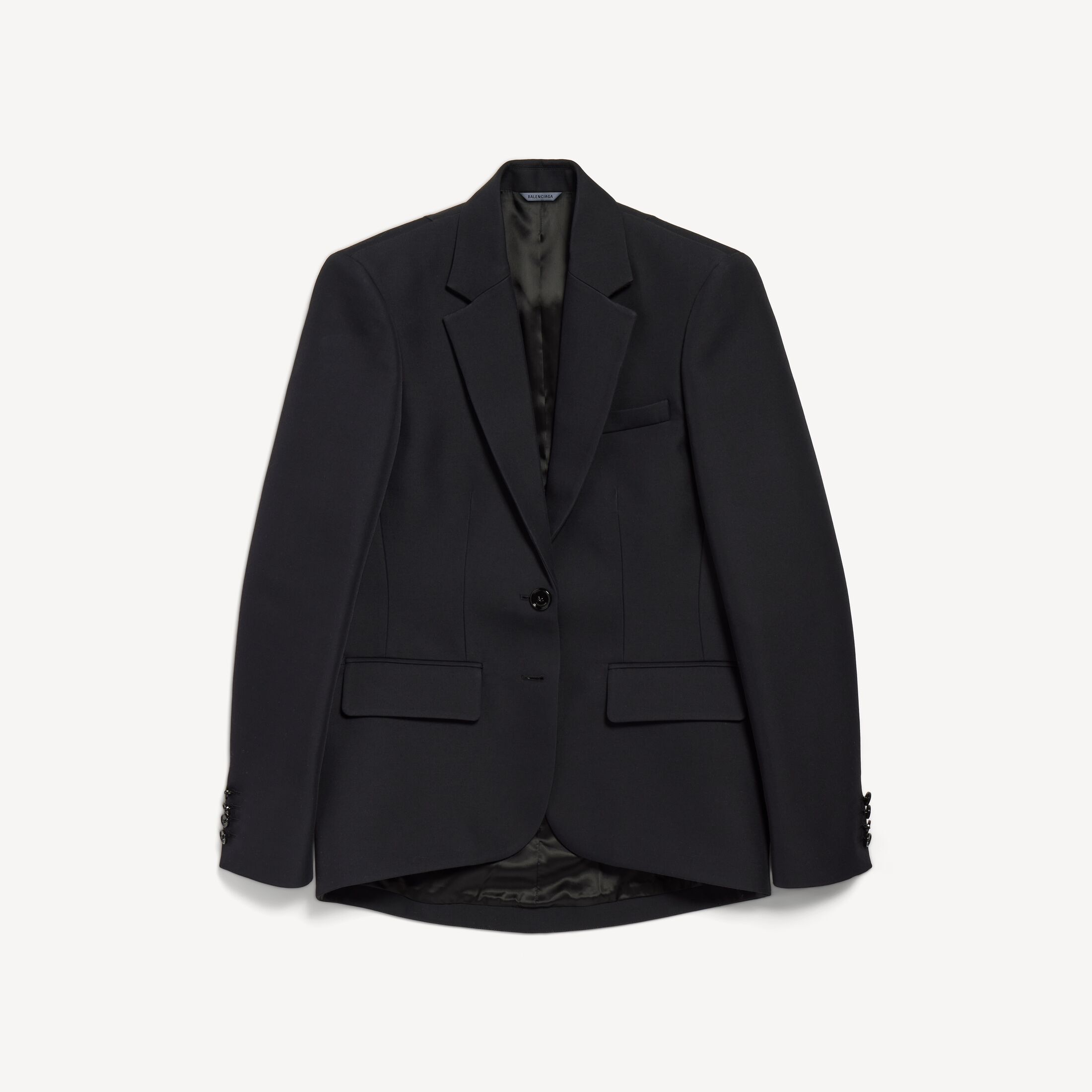 Cocoon黑色羊毛和桑蚕丝混纺单排扣夹克此商品支持花呗分期