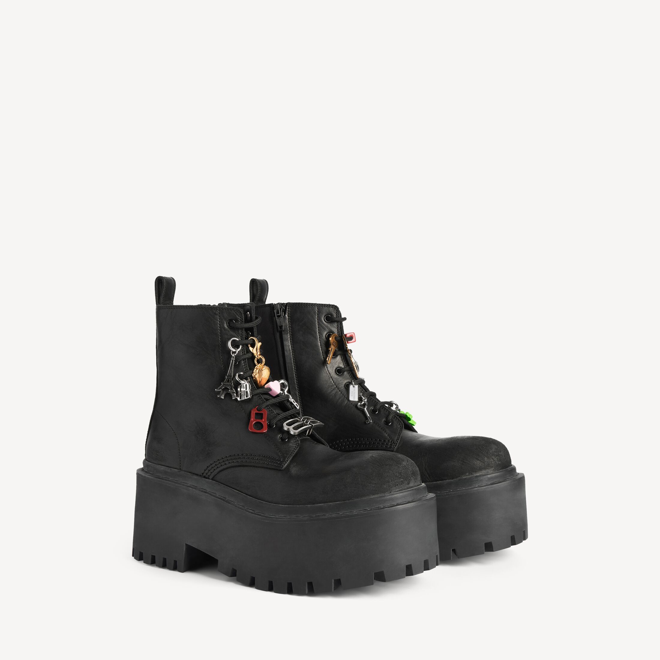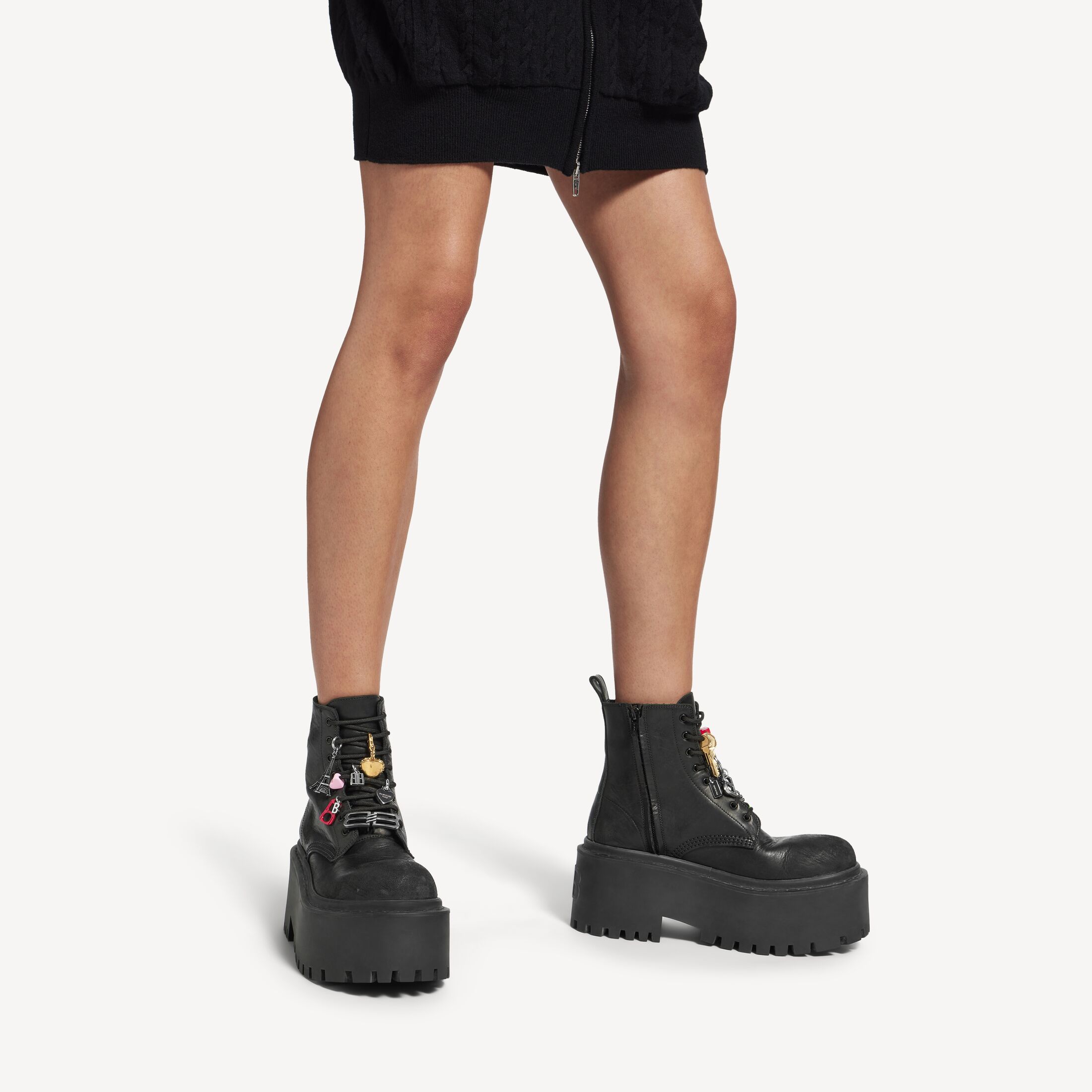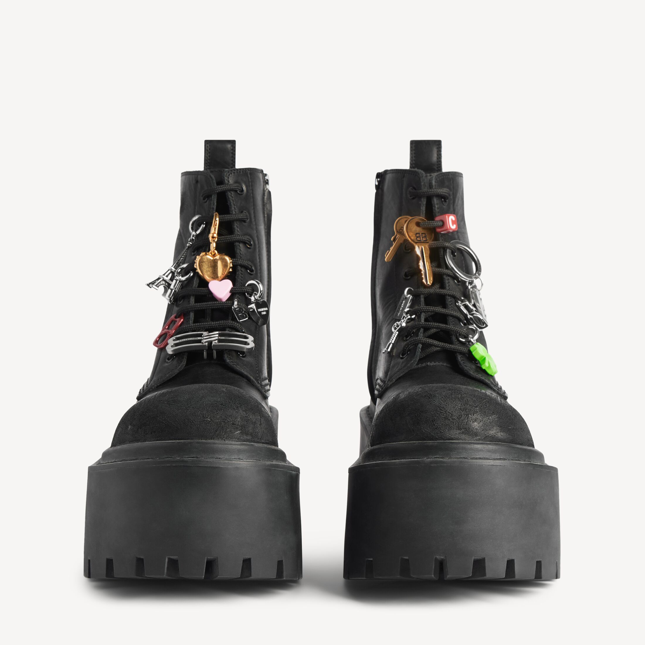 Strike黑色柔软牛皮革厚底短靴,点缀多色挂饰此商品支持花呗分期尺码 (法国)