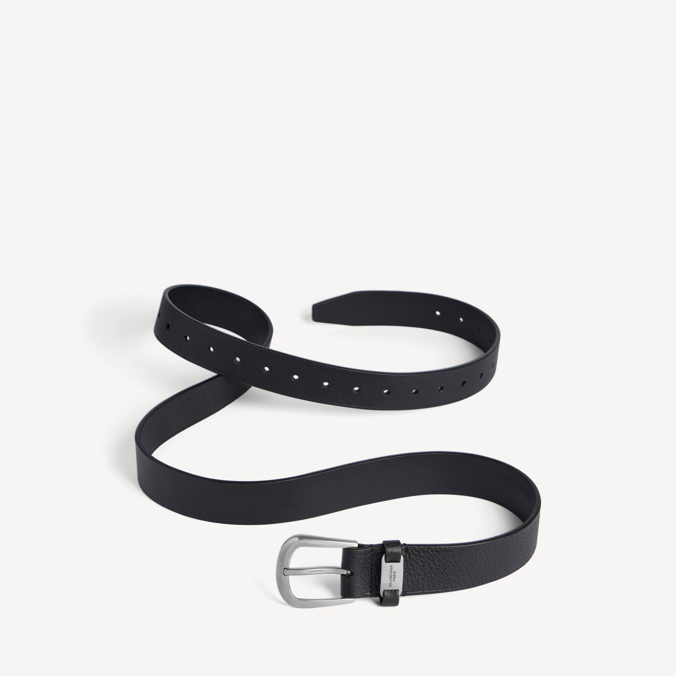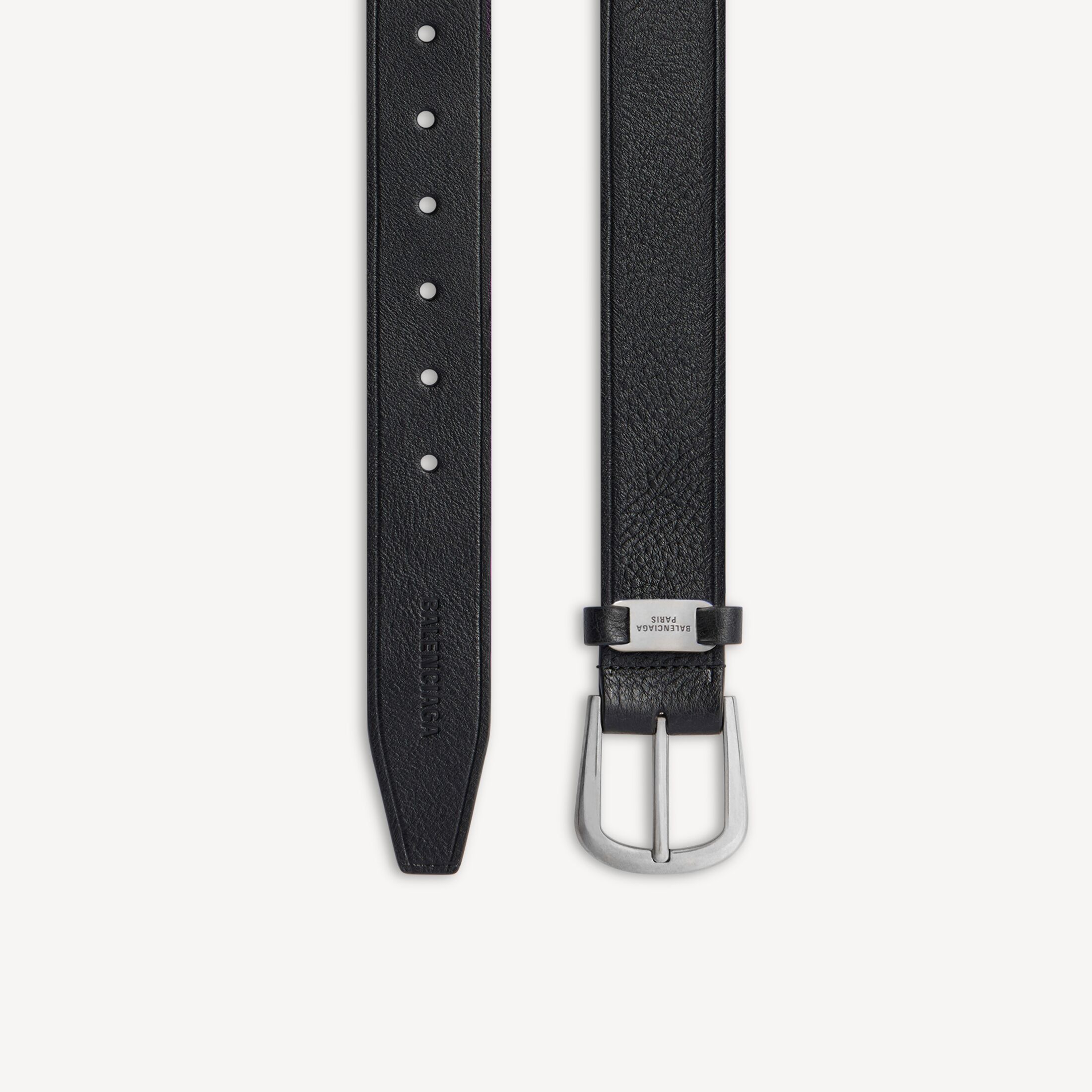 Suit黑色牛皮革腰带,饰以做旧银色金属配件,亮相于Balenciaga 2024冬季系列的多款造型中。此商品支持花呗分期尺码 (法国)