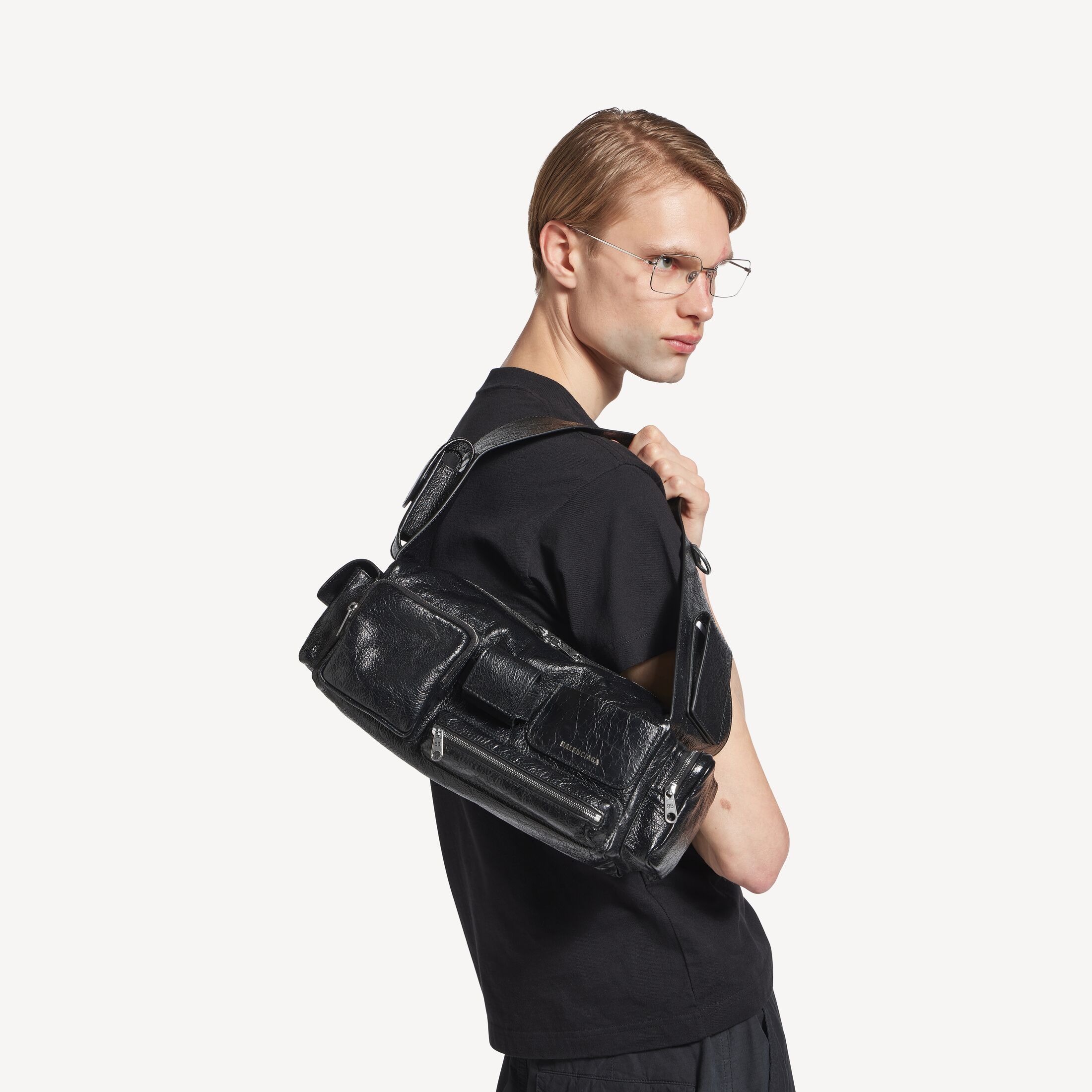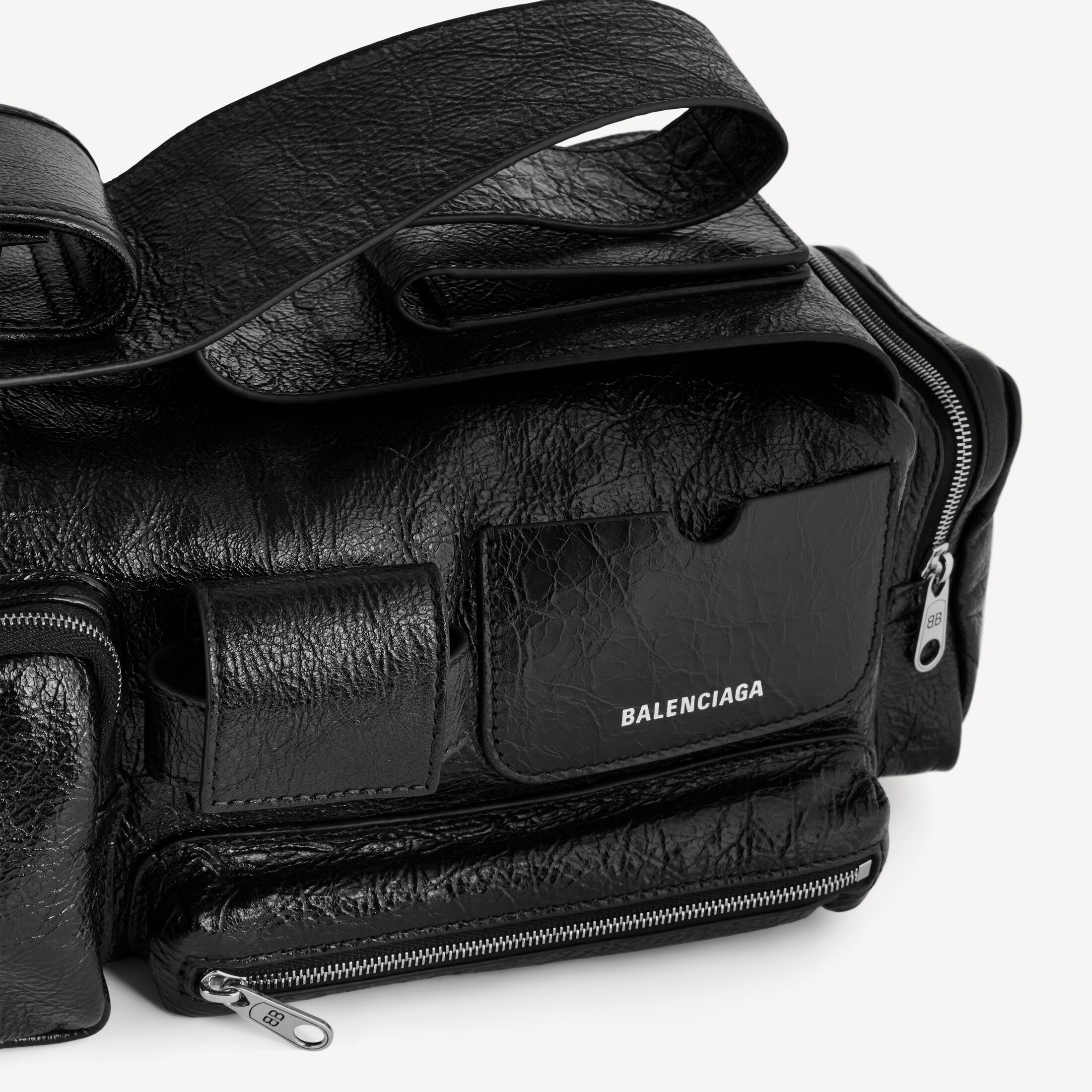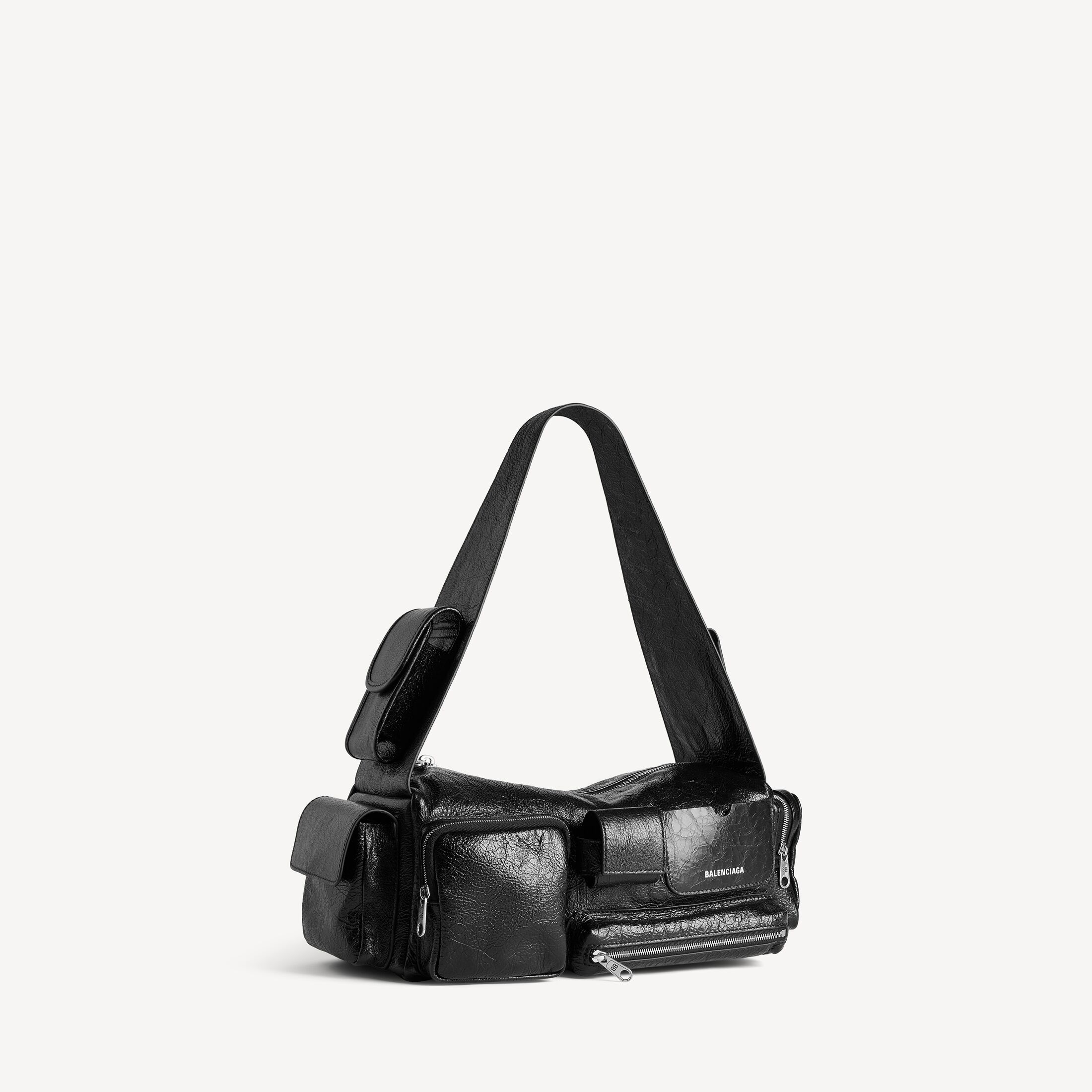 Superbusy 小号黑色细纹羊皮革背提包,做旧银色金属配件此商品支持花呗分期产品细节