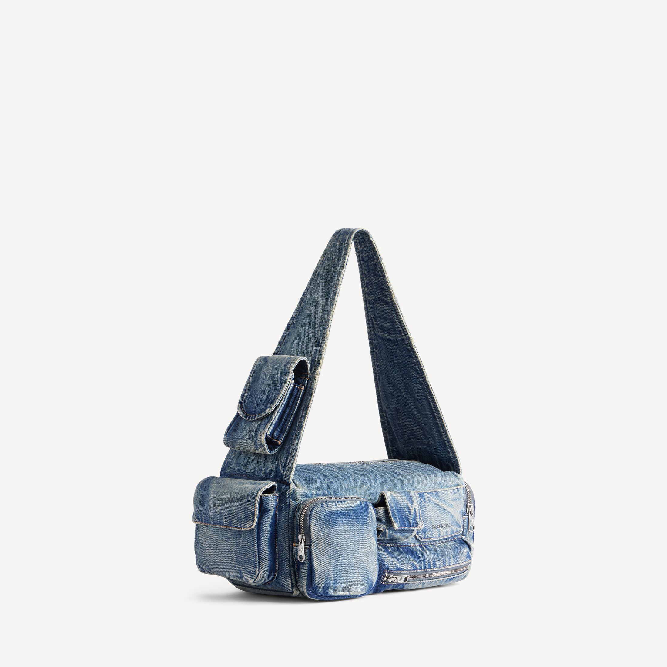 Superbusy蓝色水洗牛仔布小号单肩包,饰以做旧银色金属配件此商品支持花呗分期• 尺寸:长36.8 x 高12.9 x 宽11.9厘米