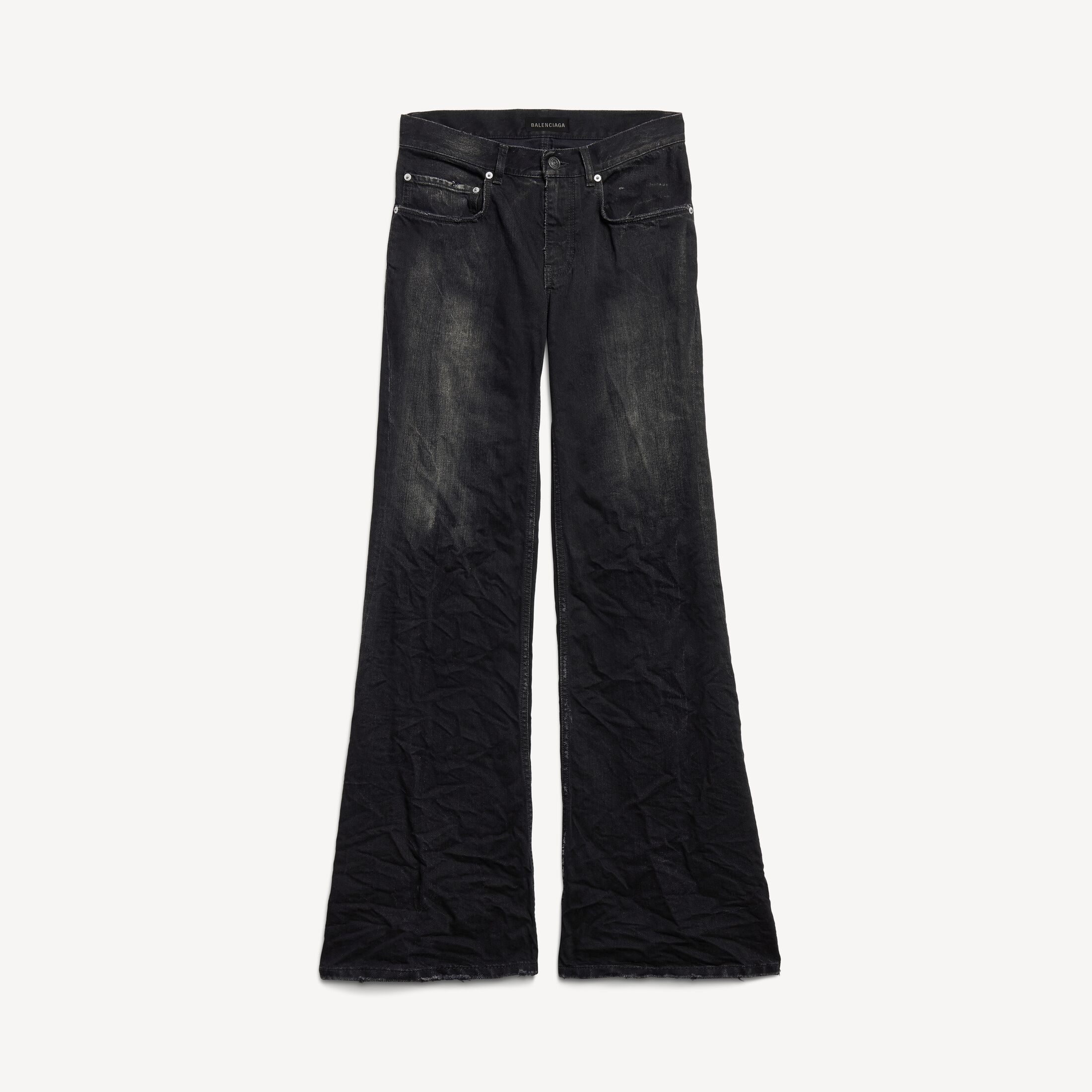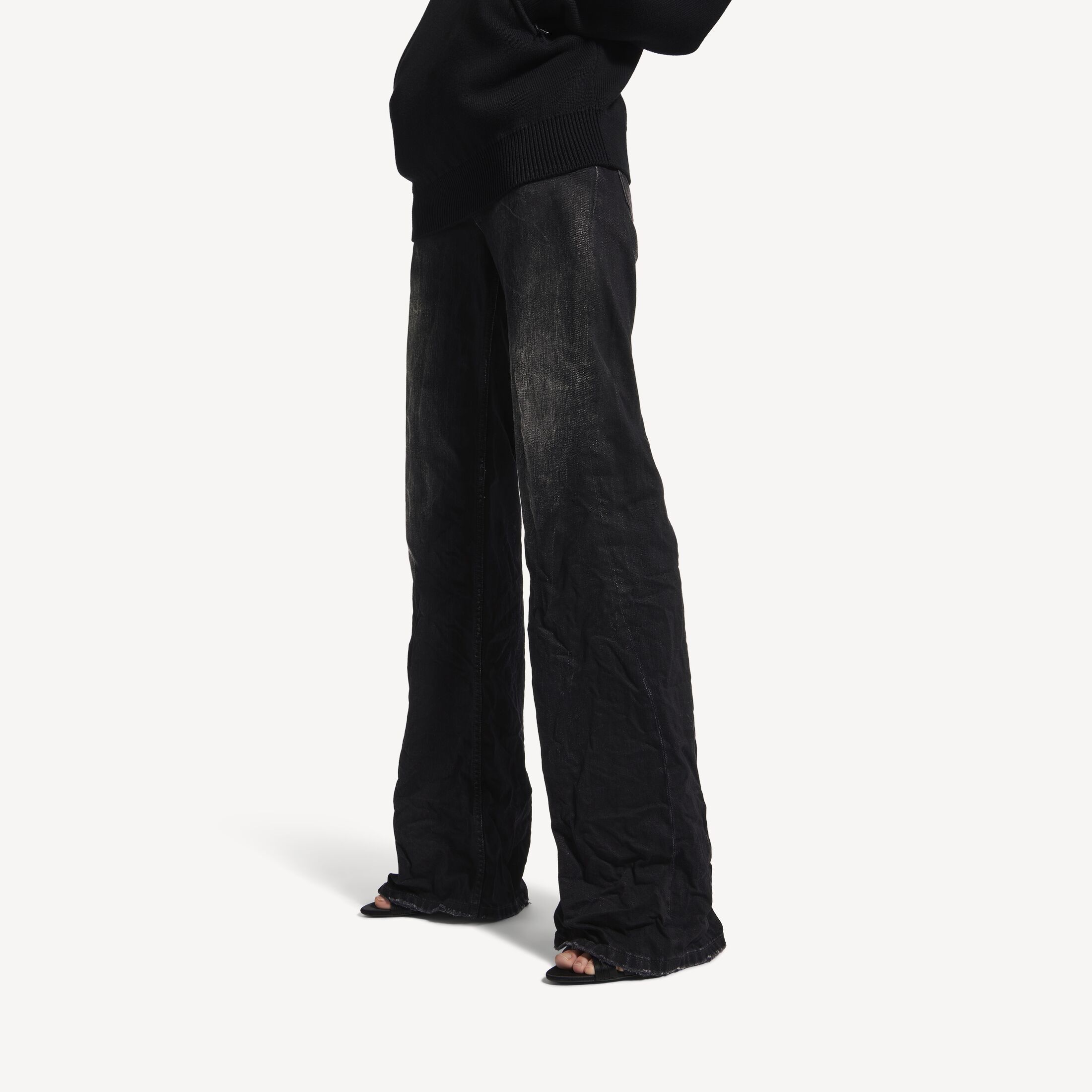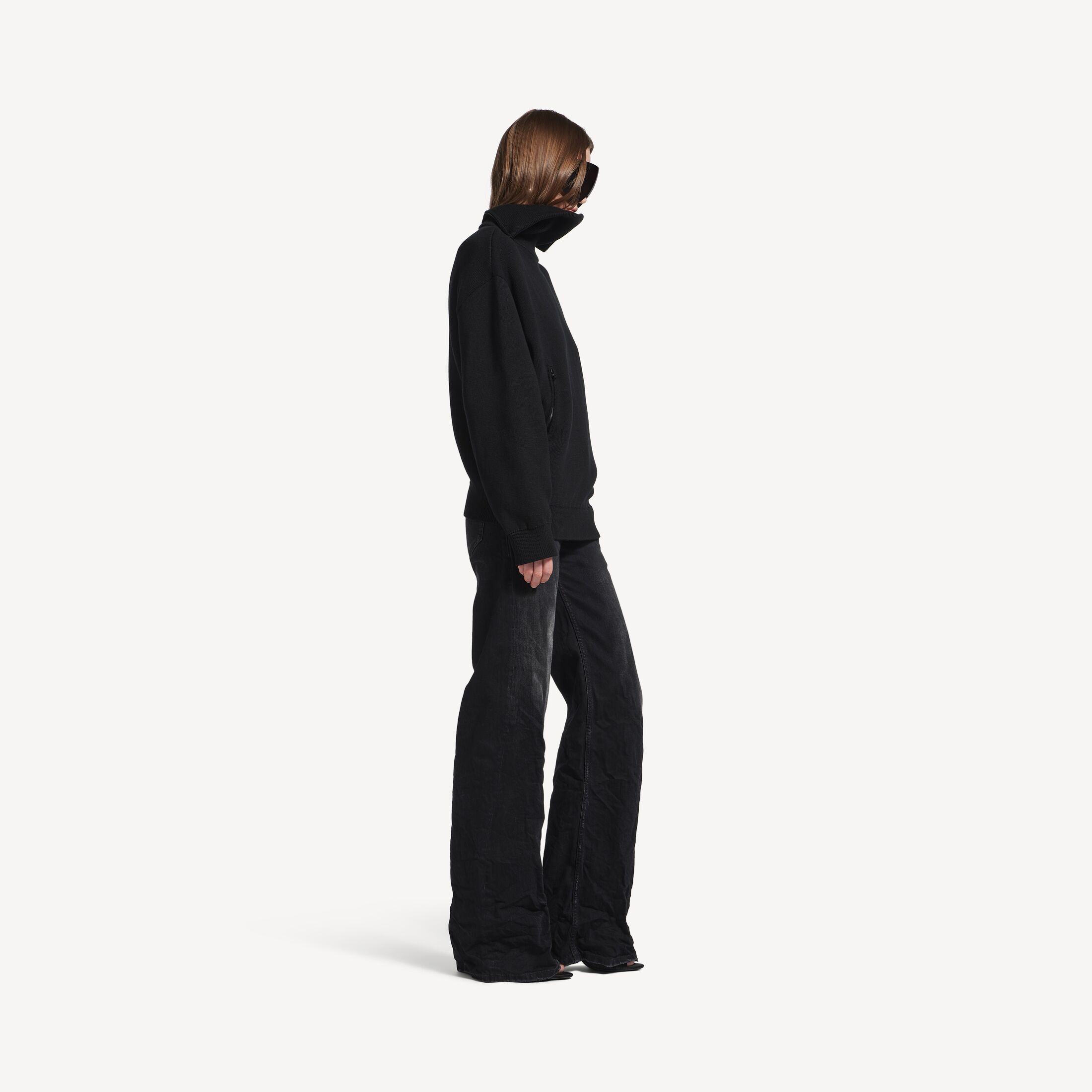 黑色棉质牛仔阔腿长裤,亮相于Balenciaga 2025冬季系列Look 18。此商品支持花呗分期尺码 (法国)